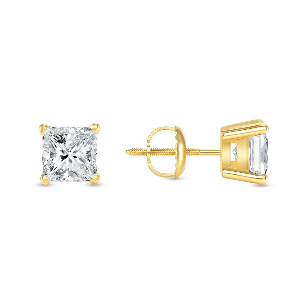 1.75 Ct Princess Cut Lab Grown/Created Diamond Stud Earrings Set in Genuine 14K Yellow Gold These exquisite lab-grown/lab-created diamond stud ear rings are crafted out of solid, genuine 14k yellow gold and brilliant cut diamonds. This design of stud earrings is one of the most desired and classy of all. They are set in a unique, durable, 4-prong basket mounting with a threaded post and screw backs to provide for an optimum closure method and peace of mind while the earrings are being worn. The diamonds emit every shade of light and brilliance that a natural diamond would, and they are chemically, physically, and optically identical to mined diamonds originating from nature. Both have the same chemical composition and atomic structure, producing the very same durability, fire, radiance, and sparkle. Laboratory grown diamonds are a testament to the use of technology and human achievement, and they also play a vital role in reducing our environmental impact and creating truly conflict-free diamonds. And as for the question on everyone's minds regarding the authenticity and legitimacy of l ab-grown diamonds , YES, since these stones are 100% genuine diamonds in every way, they will register as positive (real) when tested with a diamond tester! There's no reason not to jump in! Brand --> Shine Brite With A Diamond Total Carat Weight (TCW) --> 1.75 Carat (0.875 Ct. (Approx. 5.5 mm x 5.5 mm) each) Metal --> Real , Genuine , Solid Yellow Gold Metal Purity --> 14K (585) Gem Type --> 100% Lab-Grown/Lab-Created Diamond Design --> Studs Main Stone Shape --> Princess, Brilliant Cut Diamond Color --> F/G Diamond Clarity --> VS1/VS2 Diamond Cut --> Excellent Mohs Hardness --> 10 Setting --> 4-Prong Basket Type of Post or Back --> Screw Back Number of Stones --> 2 Country of Manufacture --> United States Origin of Stones --> State-of-the-Art Laboratory Certification Included? --> Yes Availability --> Limited Quantity So What Will I Be Receiving in the Mail? A Pair of Genuine Solid 14 Karat Yellow Gold Princess Brilliant Cut Lab Grown Diamond Stud Earrings . An Elegant and Luxury Jewelry Box. Certificate of Appraisal (2 ct+ pairs may also include IGI certificate, if available, and $500+ orders automatically qualify for ebay's Authenticity Guarantee!). REFUNDS We guarantee your satisfaction and offer a 30-day money-back return (or exchange) policy. If for any reason you are unsatisfied with your purchase, please contact us first before opening up a case or leaving negative/neutral feedback so that we could make things right! We are here to help YOU! SHIPPING Most items will ship free within 1 business day with USPS Priority Mail for expedited delivery. Please select the FedEx shipping options at checkout for even faster (overnight and 2-day) delivery. CONTACT US We're always available by e-mail through eBay messages. Please feel free to contact us anytime with any questions or concerns you may have, and we will get back to you as soon as possible (typically within 1 business day). Thank you!