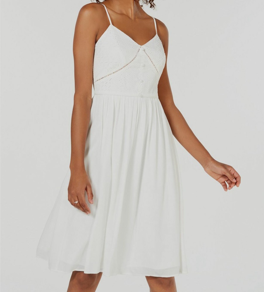 $180 City Studio Women's Juniors White Sleeveless Sweetheart Eyelet Dress Size 7 Description City Studios' trend-forward midi dress starts with pretty eyelet and ends in a flowing skirt. Approx. model height is 5'10" and she is wearing a size 7 Approx. 42" long from center back to hem. Length is based on a size 7 and varies 1/4" between sizes V-neck; A-line silhouette Hidden back zipper Eyelet bodice with laddered trim & decorative buttons Top: cotton; skirt: rayon; lining: polyester Hand wash Imported About Us We sell only 100% authentic clothing from new with tags to gently used. We have a 100% authentic or money back guarantee on every item we sell. Items are listed daily so make sure to put us on your favorite! Most of our items come from a nationwide high end dept store. We have been in business for over 10 years selling tens of thousands of designer items. We strive to meet your designer needs at a quality price! Payment Shipping Returns Payment accepted via paypal, credit/debit card. Shipping is usually within 24 hours of purchase (M-F). Super fast service. Tracked delivery. 100% satisfaction guaranteed. Please review our eBay return policy for more details. Track Page Views With Auctiva's FREE Counter