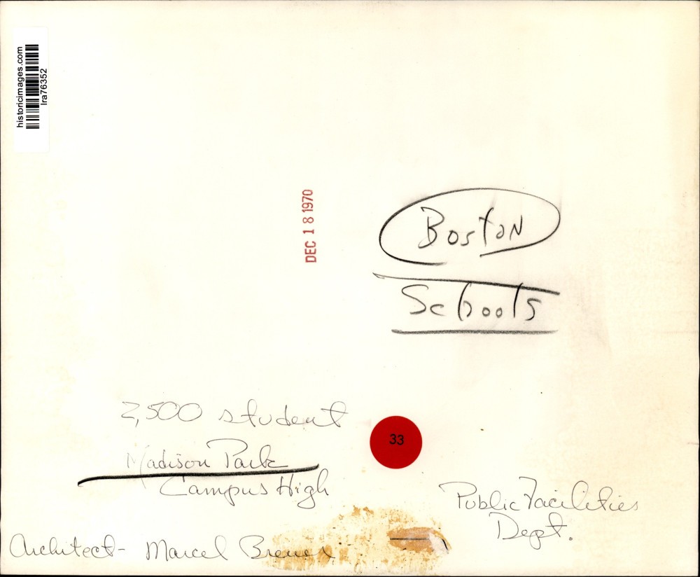 ebay template Note: Please study the images carefully to determine the condition of this vintage photograph, as it may not be in perfect condition. It may contain wrinkles, cracks, and possibly even tears due to its age and how it was handled before it got to us. A scanner may interpret colors and contrast differently than human eyes will, so it is possible that the actual photograph may be slightly darker or lighter in person. This vintage photograph is offered for sale as a collectible item and conveys no transfer of copyright. 1970 Press Photo A model of the Madison Park High School campus in Boston, Mass. This is an original press photo. Boston -- Schools --- 2,500 students -- Madison Park Campus High --- Public Facilities Department --- Architect - Marcel BreuerPhoto measures 10 x 8.25inches. Photo is dated 12-18-1970. PHOTO FRONT PHOTO BACK Historic Images Part Number: lra76352 FAQs Q: Can I just download a digital version instead? A: No, we sell only vintage originals and do not make or distribute any copies, including digital ones. Q: Do you combine shipping and invoices? A: Multiple photos won on the same seller ID combine automatically through the eBay checkout process. If you encounter problems with this, send us a message via eBay messaging and we will send you an invoice. Due to eBay limitations, we cannot combine items won on our different seller IDs for a single shipping charge. Q: How quickly do you ship the items once paid? A: We ship within one business day after your payment clears. If you do not receive an "order shipped" email from us by the close of the second business day from submitting payment, please e-mail us via eBay messaging. Q: How do you make sure my photograph arrives safely? A: We package each order between two cross-corrugated pieces of cardboard to ensure that the package is as difficult to bend as possible. We then wrap each order in a plastic sheet to help protect against moisture. We want you to rest assured that we take every precaution to ensure that the photograph you receive will be in the same condition in your care as it was in ours. Q: Will the "Historic Images" watermark be on my photo when I receive it? A: No. This is a digital watermark we use to protect our images. It is not printed on the photo. Q: What are your office hours? A: eBay for us is a business, and a very fun one to be in! We are open M-F 9 to 5 (CST). Therefore, we do not return e-mails and phone calls over the weekend. We observe the following holidays: New Years Day, Memorial Day, Fourth of July, Labor Day, Thanksgiving and the day after Thanksgiving, Christmas Eve and Christmas Day. Q: Where did all these vintage photos come from? A: These original vintage photographs are from various news service and newspaper photo archives from locations around the country including: Boston, Detroit, Tampa, Chicago, Denver, Seattle, New Orleans, Milwaukee, Portland, Spokane, and more. We do not copy or reproduce any photographs -- every item is a unique vintage piece that was housed in a news archive. Q: Can I use this photograph in my book/blog/website? A: The short answer is no. There is no transfer of copyright for republication or reproduction with these photographs when you purchase them, and only photographs taken before 1923 are currently automatically in the public domain. Permission from the copyright holder, which usually can be identified from the back of each photo, must be sought to republish or reproduce the image for any purpose. Q: Do you relist items (in case I miss an auction ending)? A: Auction items that receive no bids are relisted in our store (historicimages-store on eBay) as a fixed-price item and at a higher price than the starting auction price. Q: Do you leave feedback? A: Yes, we always leave feedback for buyers. Our software monitors when our buyers leave us feedback, then notifies us that we can leave feedback for the buyer. Rest assured, if you leave feedback, we will do the same! Check out our family of eBay IDs: historicimages01 Sports Photos historicimages02 Entertainment Photos historicimages03 Americana Photos historicimages04 International & War Photos historicimages05 Transportation Photos historicimages06 Photos of All Subjects historicimages07 Entertainment Photos historicimages08 Newsworthy Photos historicimages09 Entertainment Photos historicimages10 Sports Photos historicimages-store Our largest fixed-price selection historicimages-gallery Hand-picked photos Saturday night auctions About Us Historic Images was formed in September 2009, with a handful of scanners working out of a basement to digitize newspaper photo archives. We have since moved out of the basement, and we can now archive thousands of photos per day. Our company has worked with magazines and newspapers from Detroit, Boston, Denver, Seattle, Tampa, Chicago, and New Orleans, just to name a few. We are constantly adding to our inventory, and have assembled an archive of millions of photos to date. As our company evolved, we began our eBay business, which brings thousands of fresh auctions per week to the world's largest online auction marketplace. Our custom software systems and team of great employees allow us to efficiently scan and sell large photo archives online. At the very core of our company's DNA is a strong commitment to customer satisfaction and strict integrity for our product. Our promise to you is that we will do everything in our power to provide you a great buying experience. Copyright 2009 - Present, Historic Images, Inc. Sell Smarter with Kyozou. Inventory and Ecommerce Management
