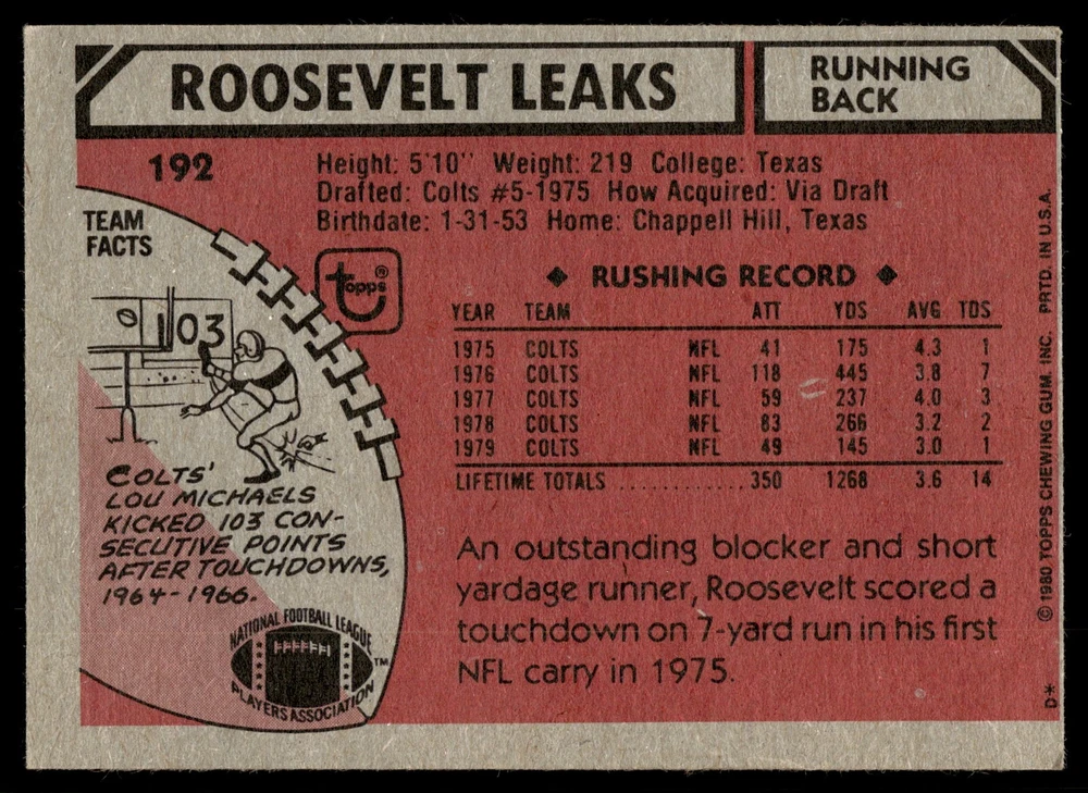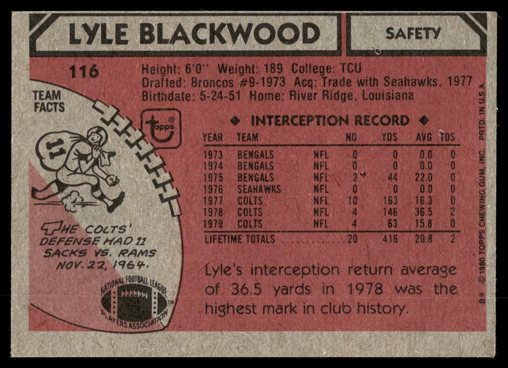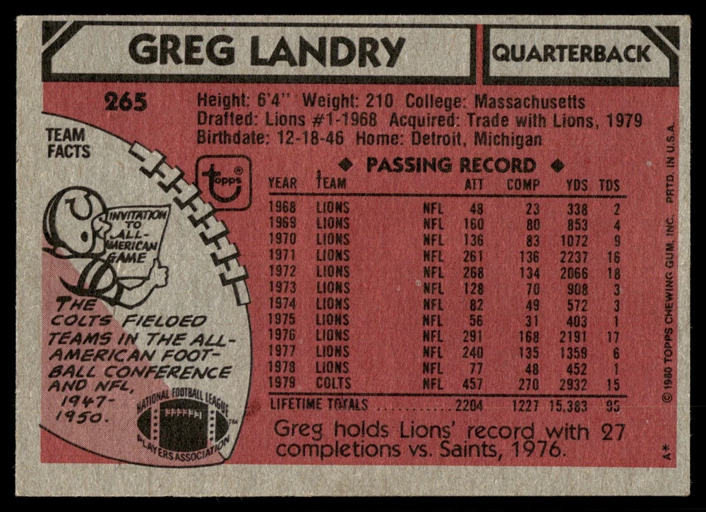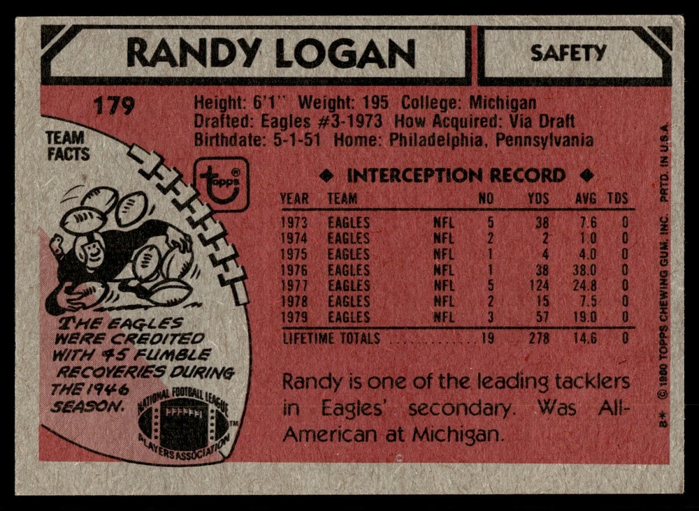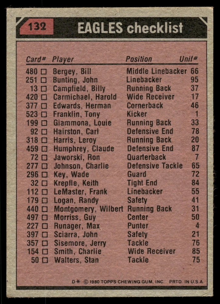 This purchase is for a 1980 Topps Football Complete Your Set . The condition listed for this card is my opinion, I am not a Professional Grader. The photo in this listing is of the actual card we do not use stock photos so please look closely. Thank you for shopping at Bill Thompson's Sports Cards If you have any questions, please message us before you place a bid or purchase. We are available to answer questions Monday through Friday during business hours between 8:00 am and 5:00 pm (Eastern Standard Time). Questions asked after hour will be answered the next business day at the lasted. WE offer combine shipping if you purchase more than one item. To get combined shipping USE EBAY'S SHOPPING CART SYSTEM FOR MULTIPLE PURCHASES for each item you are purchasing, as all items must be paid for together in a single transaction. All transactions will be made using eBay payments system only Your orders will be shipped within 24 hours of receiving payment. Shipping is down Monday through Friday. States that have implemented regulations for internet sales are required to pay their states sales tax on order items. This is state law and eBay policy. WE HOPE YOU SHOP WITH US AGAIN SOON