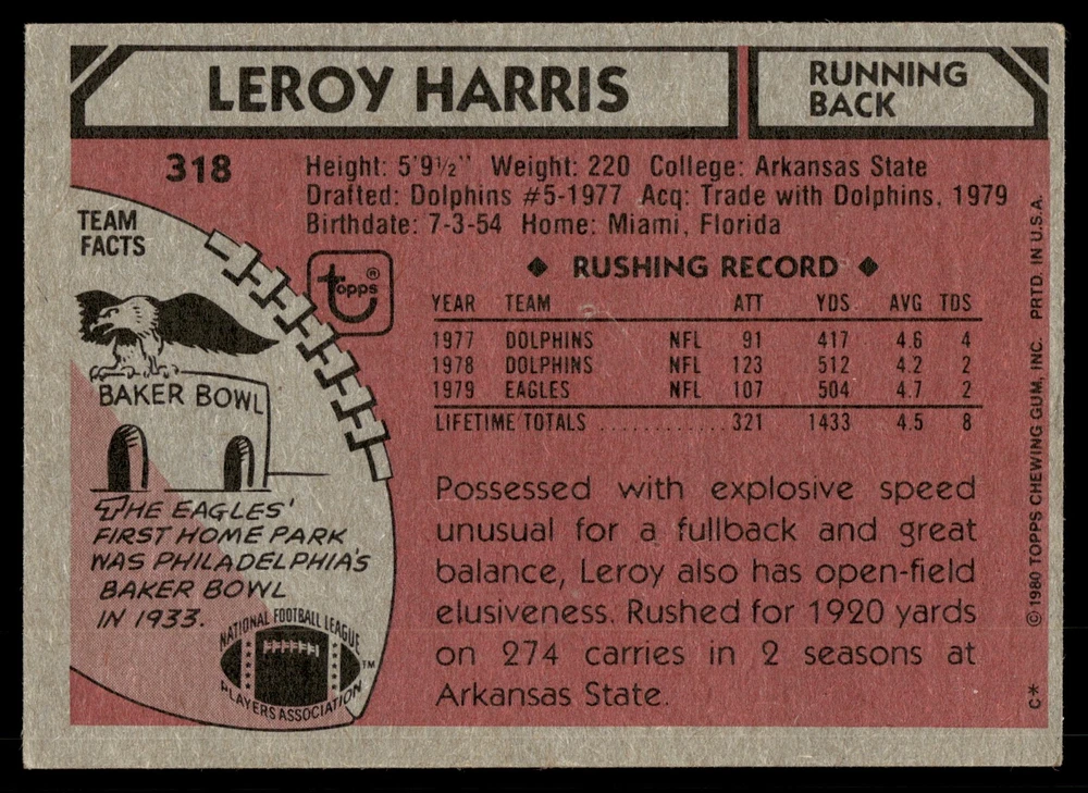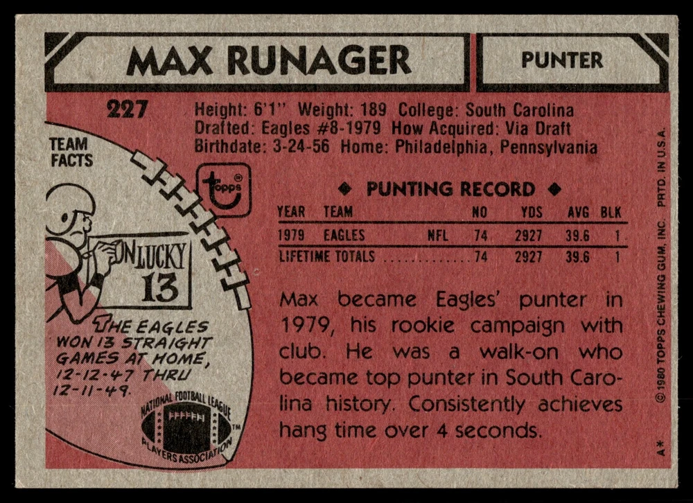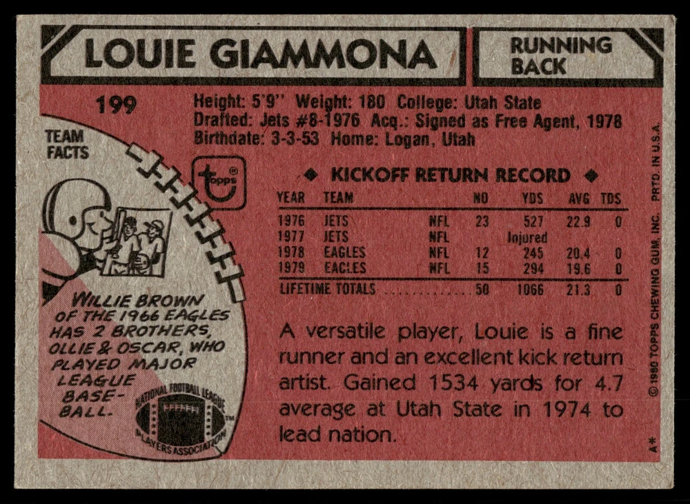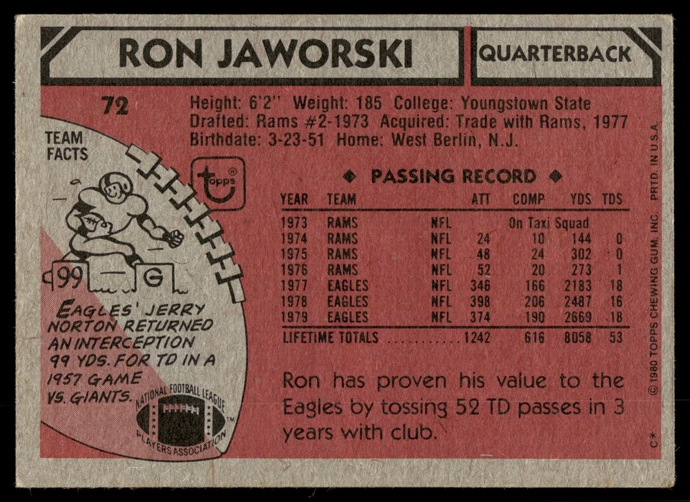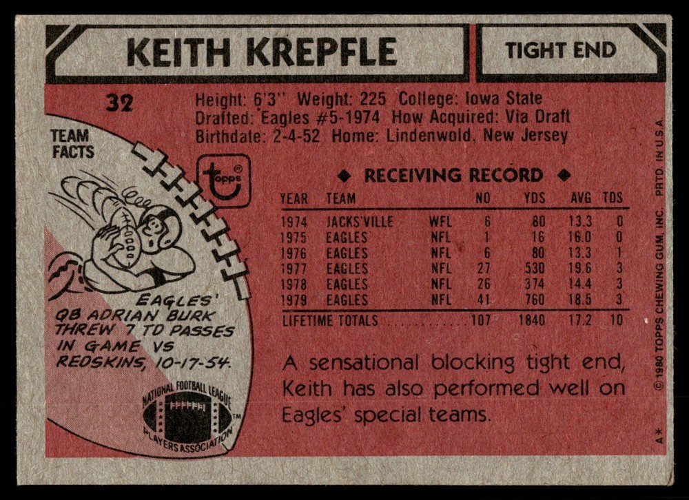 This purchase is for a 1980 Topps Football Complete Your Set . The condition listed for this card is my opinion, I am not a Professional Grader. The photo in this listing is of the actual card we do not use stock photos so please look closely. Thank you for shopping at Bill Thompson's Sports Cards If you have any questions, please message us before you place a bid or purchase. We are available to answer questions Monday through Friday during business hours between 8:00 am and 5:00 pm (Eastern Standard Time). Questions asked after hour will be answered the next business day at the lasted. WE offer combine shipping if you purchase more than one item. To get combined shipping USE EBAY'S SHOPPING CART SYSTEM FOR MULTIPLE PURCHASES for each item you are purchasing, as all items must be paid for together in a single transaction. All transactions will be made using eBay payments system only Your orders will be shipped within 24 hours of receiving payment. Shipping is down Monday through Friday. States that have implemented regulations for internet sales are required to pay their states sales tax on order items. This is state law and eBay policy. WE HOPE YOU SHOP WITH US AGAIN SOON