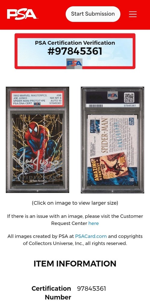 Graded Marvel trading card arrived in perfect shape, great packaging, fast ship, thanks so much! A+A+A+A+