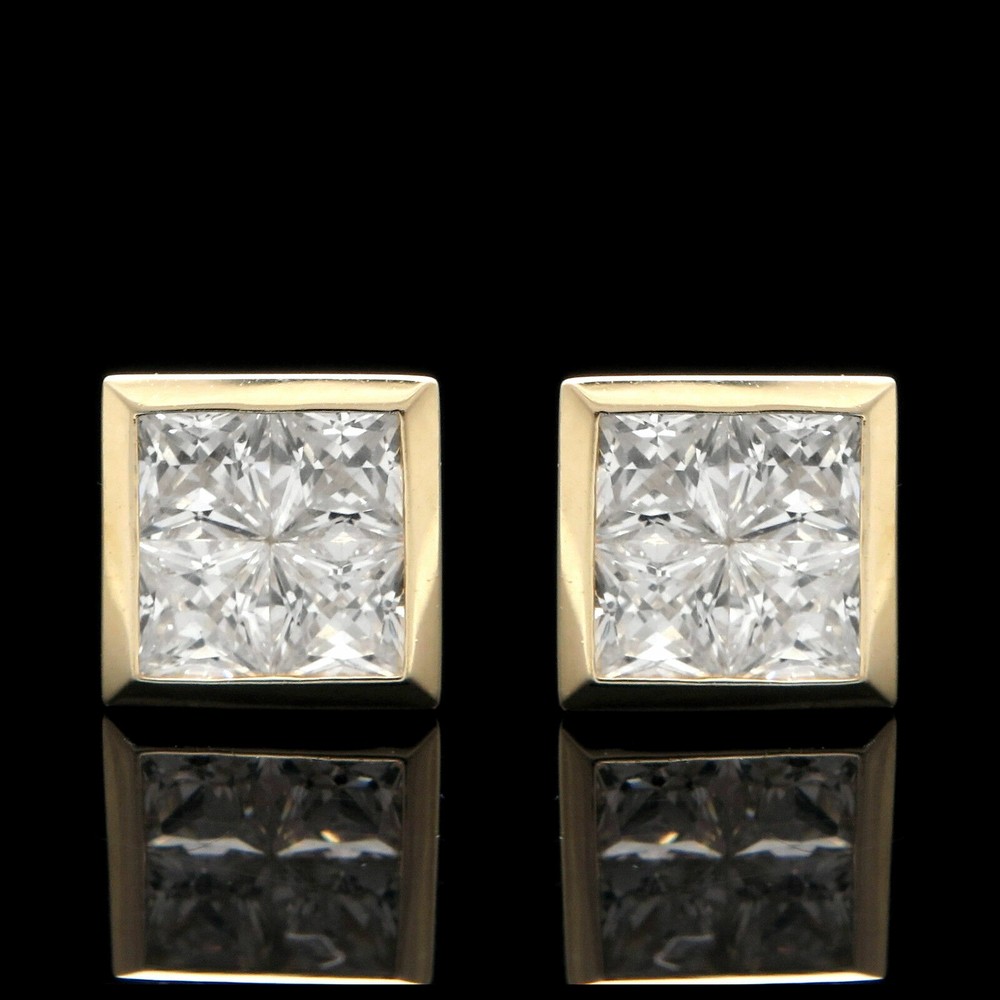 Brand new square stud earrings featuring eight dazzling bright princess cut simulated diamonds totaling 1.00carat. These sparkling diamonds set in four invisible settings with secure butterfly fastenings, all crafted from solid 14K yellow gold . Diamond Specifications: Type: Simulated Cut: Princess | Square Color | Clarity: D | VVS1 Total Carat Weight: 1.00ct | 0.50ct each stud Basket Specifications: Metal: Yellow Gold | Solid Metal Purity: 14K | .585 (Europe) Setting: Invisible 4 Measures: 7mm x 7m Fastening: Butterfly | Solid Gold Stamped: 14K | Post and Fastening Retail Price: $299.99 Payment We only accept payments through eBay (PayPal, VISA, MasterCard, Am Ex, Discover). Payments must be made within 48 hours from the purchase. Please let us know if you are waiting to purchase another item, or need more time to make full payment, and we will not open an unpaid item case. Shipping Items will be shipped via United States Postal Service 1st Class mail. We usually ship same or next business day after payment is cleared and will provide a tracking number. Please allow 2-5 business days for delivery. We also offer next day delivery to most U.S. addresses via Express mail. For guaranteed next day delivery, please contact us. Return Policy We offer 30 days money back guarantee. you can send back your item for a full refund within 30 days after delivery day. Note that the items should be returned in their original, new condition otherwise it will not be accepted. Buyer is responsible for return postage. - NO EXCEPTIONS . Customer Satisfaction is our main goal. We do our best to provide an outstanding customer service, so if there is any problem or a concern, please contact us via eBay messages ANYTIME. We will solve any issues and make sure you are 100% SATISFIED ! Please contact us if you are not happy with your purchase for ANY reason. Thank you.