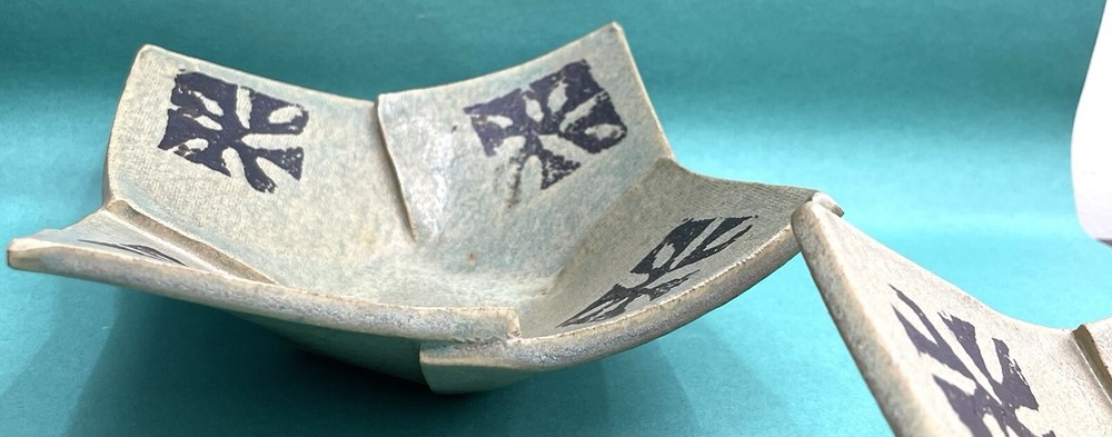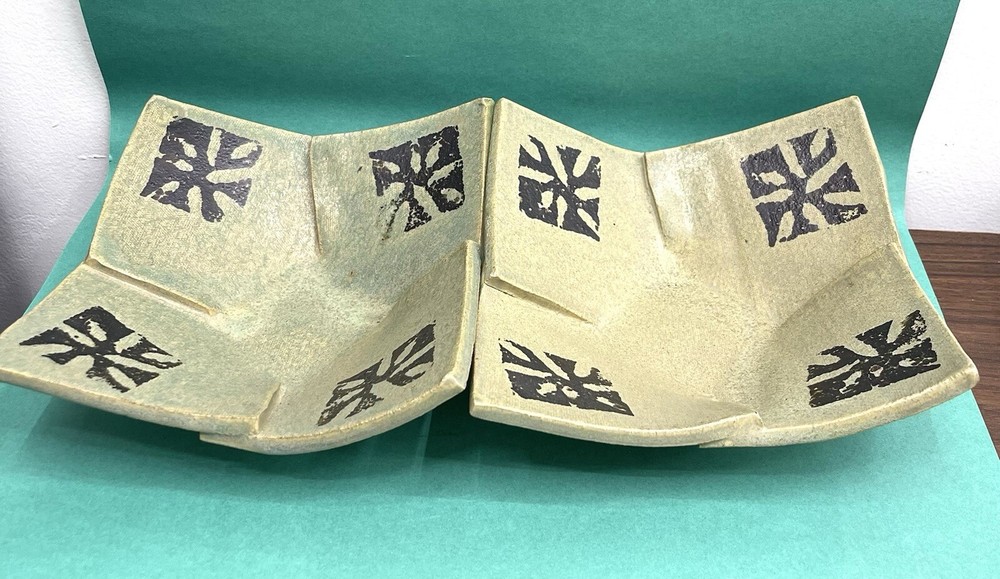 Set of 2 Art Pottery Studio Made Clay Bowls Khaki Square 7" x 6.5" x 2.75" Artist Signed "PALMQUIST"...