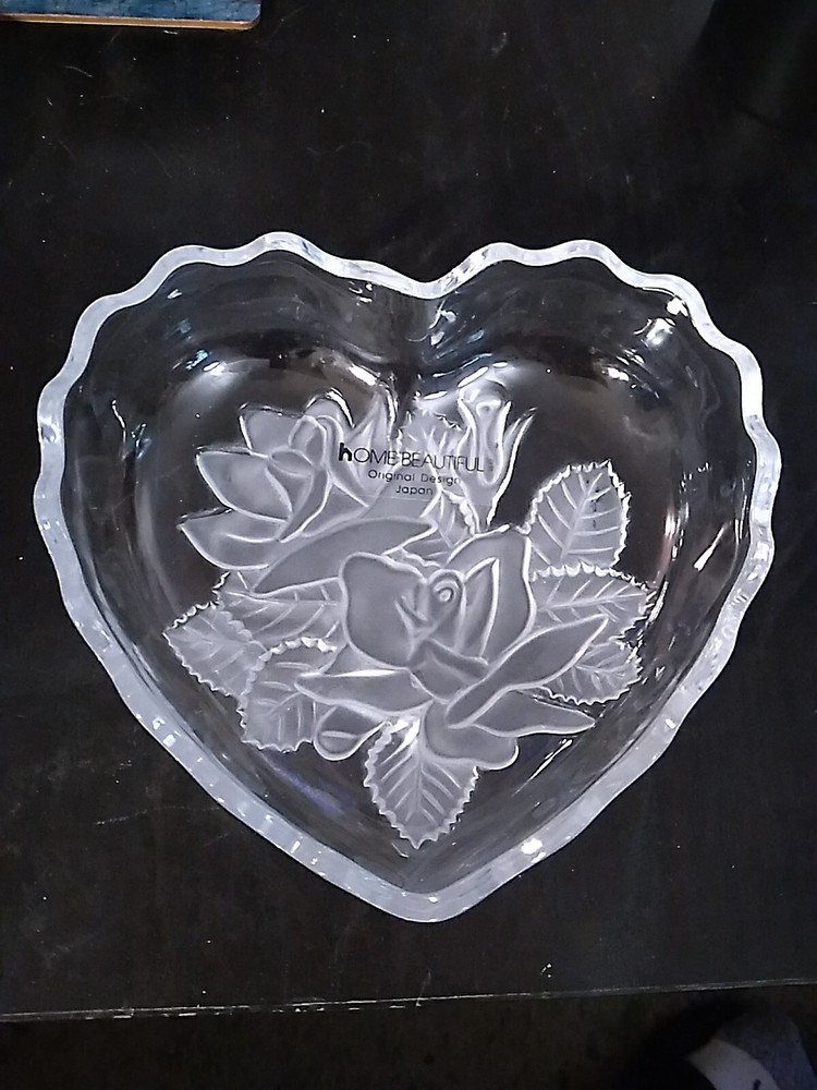 This beautiful candy dish is a must-have for any home. Its heart-shaped design and etched frosted glass finish make it a unique and elegant addition to any tabletop. With a capacity for hard candy, this dish is perfect for storing your favorite treats. Crafted by Studio Nova, this candy dish is a handmade work of art. The clear glass and etched heart pattern add a touch of charm to any room. Care instructions recommend hand washing only to preserve the quality of the glass. This original piece is from Japan and is sure to impress.