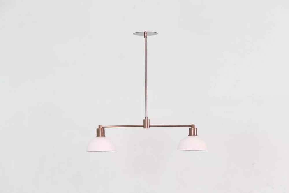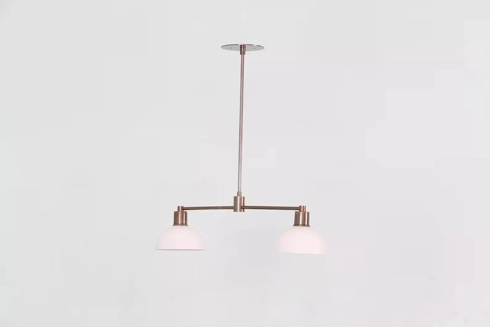 This stunning mid-century brass chandelier adds instant vintage charm to any space! The raw brass finish gives it a warm, organic feel, while the two downward-facing shades create a cozy, focused glow. I love how the handmade craftsmanship shows in the unique details—no two are exactly alike. Perfect over a dining table or in a retro-inspired living room, it’s surprisingly lightweight yet feels solid and well-made. The 24" size makes a statement without overwhelming the room. Just add Edison bulbs for that perfect warm ambiance. A gorgeous blend of modern and retro that elevates any decor!