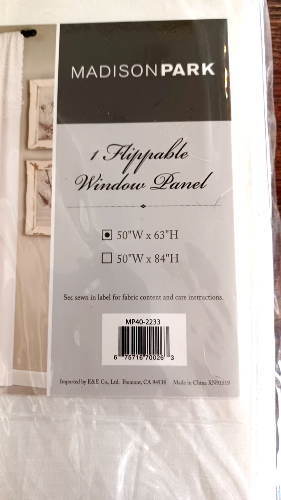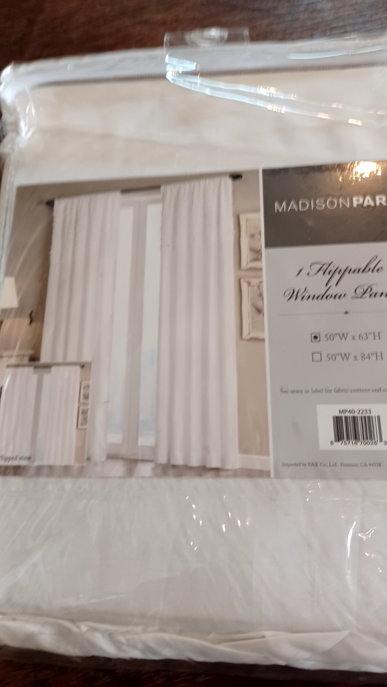 2 units of Madison Park Flippable White Solid Fabric Window Curtains 50X63 NWT still in original packaging. Never taken out. daughter bought the wrong size! hope these make you happy
