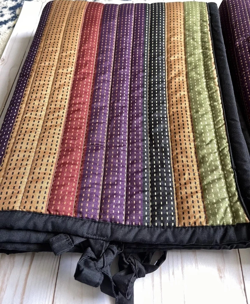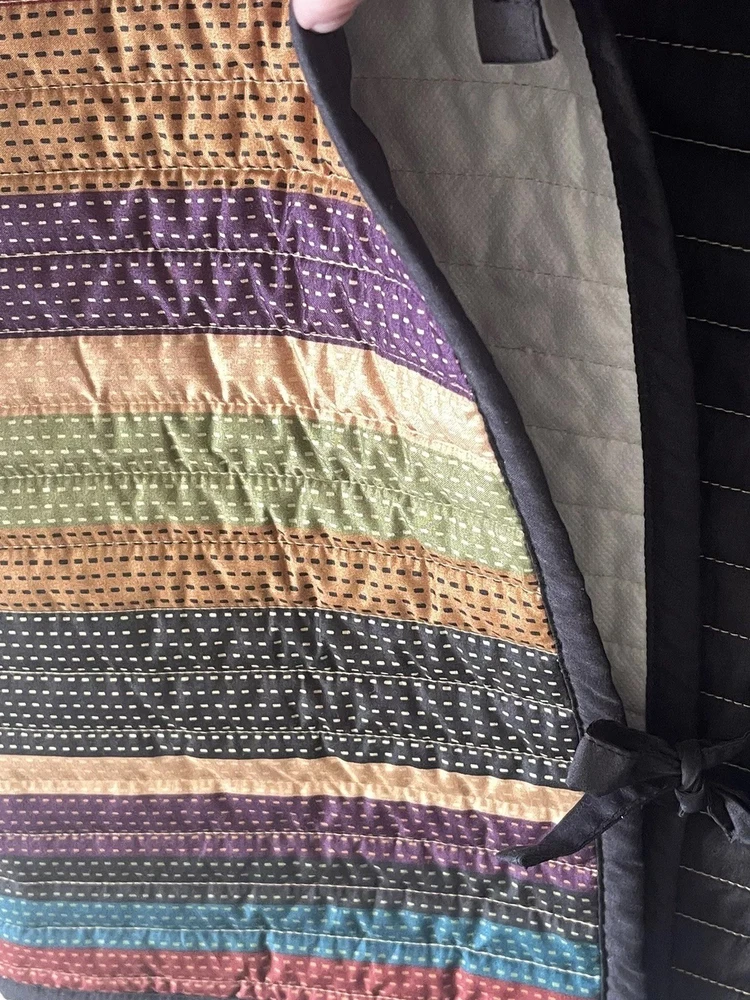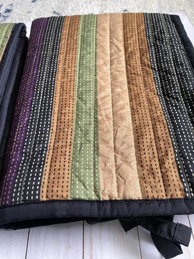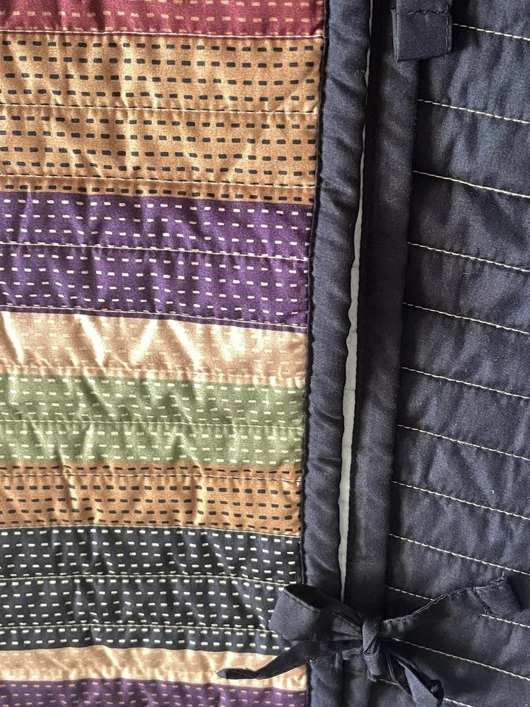 Pair of Madison Park pillow shams 20”x26” Quilted multicolor stripe with tie closures on one end Solid black on back Beautiful condition. No stains or issues. Smoke and pet free home