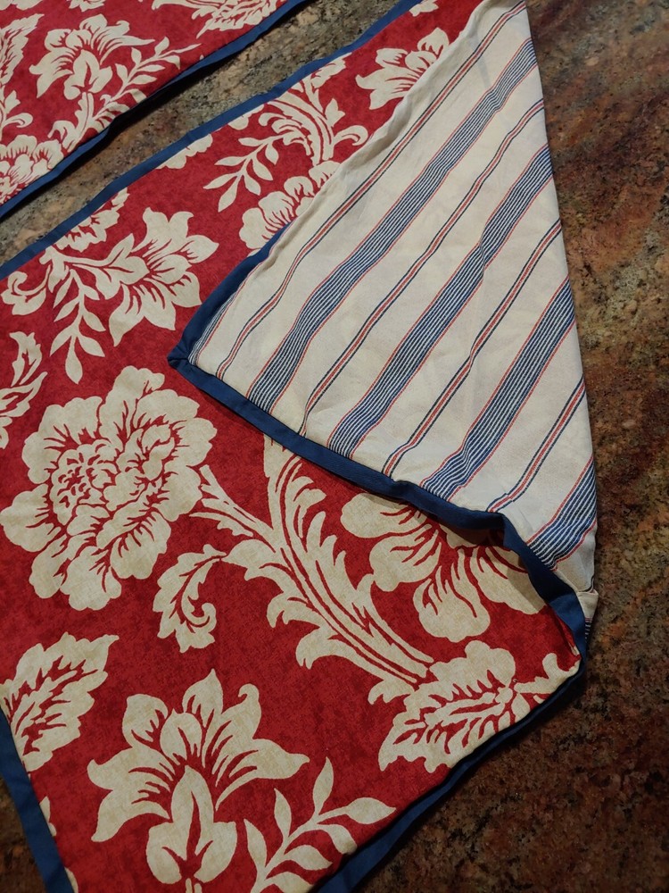 2 pre-owned standard pillow shams. Measure 25.5 x 19.5 not including the 1/2" blue knife edges. 100% Cotton top, Cotton Polyester back. Nice condition. Launder before use!! 6.3oz pair Check out my store!