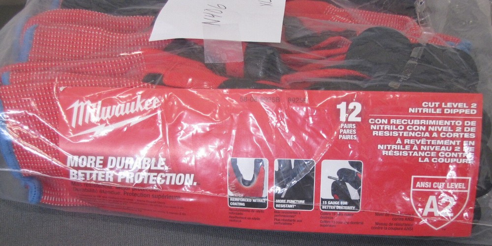 2 Milwaukee 2 Cut Level 2 latex dipped work gloves 48-22-8928 Xlarge size. Two pair of gloves each...
