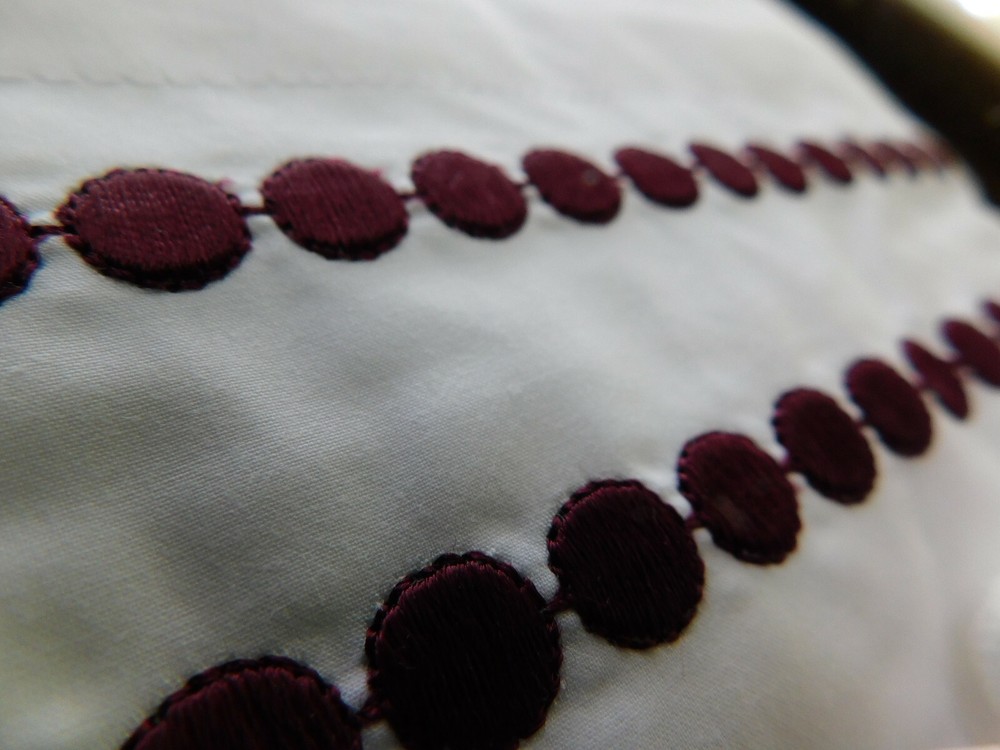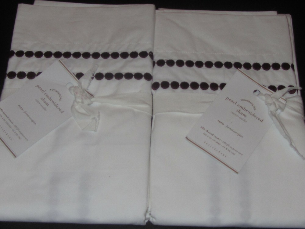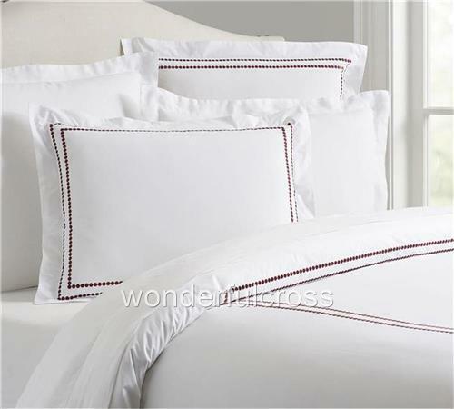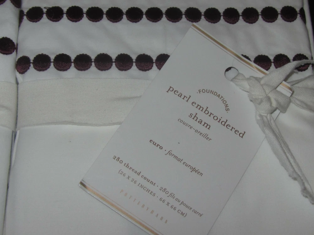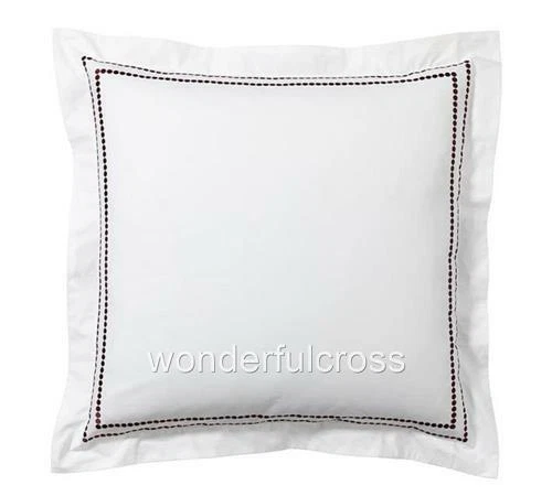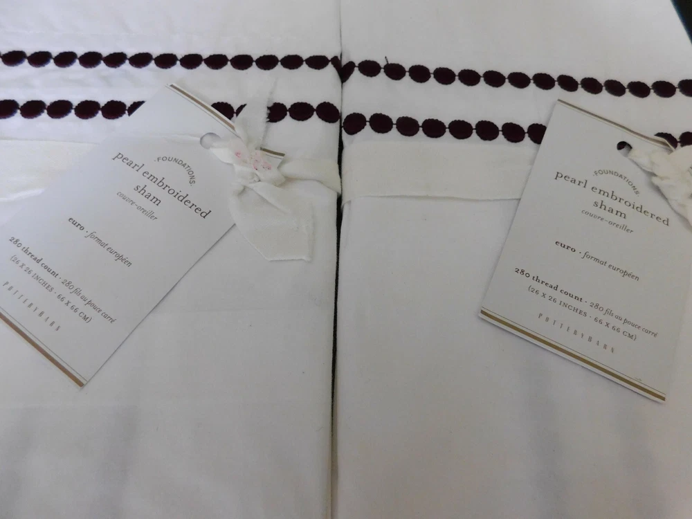 Brand New with Tags Color is Madeira Wine Choose European or King Set of 2 All-white linens pop with style. Expertly tailored, two rows of embroidered satin-stitch dots accent our shams. DETAILS YOU’LL APPRECIATE: Made of 95% cotton / 5% organic cotton. Percale weave is denser and wears well over time. Easy-Care finish eliminates the need for ironing. Detailed with a satin-stitched embroidery. Sham features an envelope closure. DIMENSIONS: Euro: 26" square King: 20" high x 36" wide Flange: 2 KEY PRODUCT POINTS: 280-thread count. Sham and insert sold separately. Machine wash. Imported. See my other auctions this week for other Restoration Hardware and Pottery Barn pieces at fantastic prices. Thanks for looking and happy bidding!! Track Page Views With Auctiva's FREE Counter