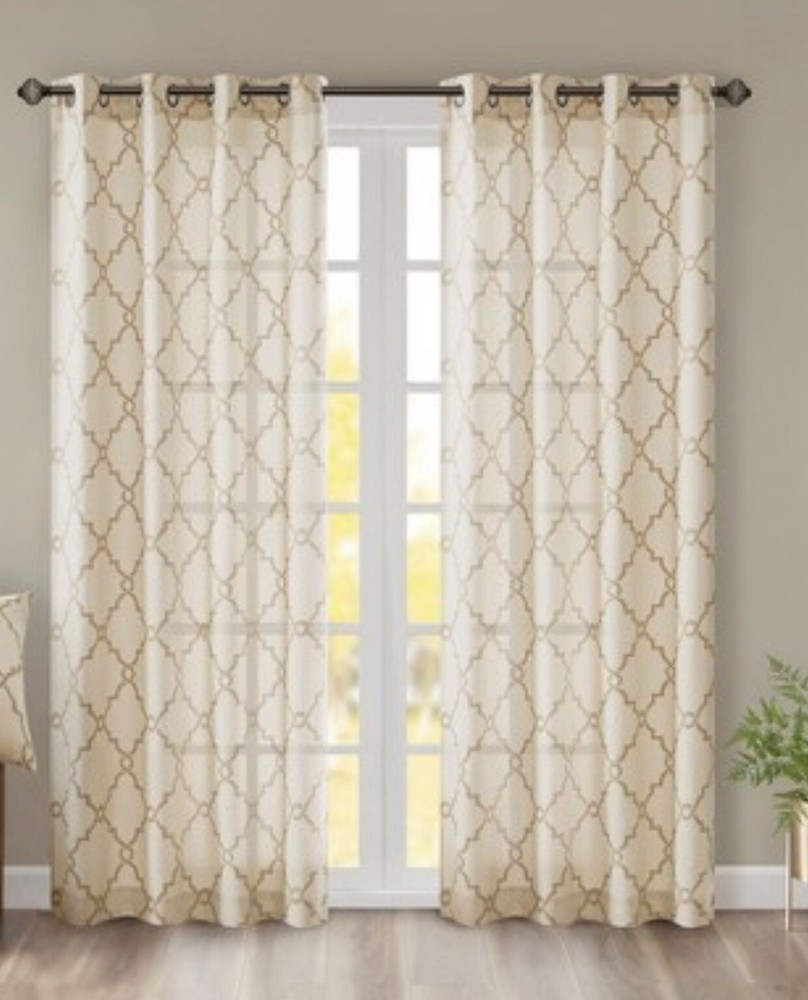 Pair of 2 New Sereno Fretwork Print Light Filtering Curtain Panels Beige/Gold 50"x95". Condition is New. Shipped with USPS Priority Mail.