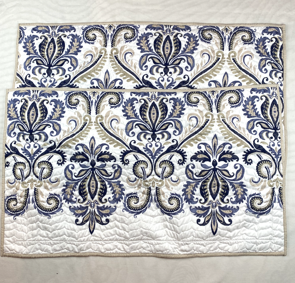 New, unused no tags/packaging Set of 2 Madison Park Paisley Print Quilted King Pillow Case Sham in Blue + Beige 39.5 x 24 in