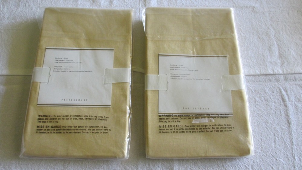 Up for bid two (2) POTTERY BARN Tailored Yellow Standard Linen 26 x 20 Pillow Shams ~ New Old Stock. Please see all photos as this is what you are buying. Let me state right up front ~ I am no EXPERT! If you have any questions or need additional photos, please let me know as I would be happy to assist. If you are interested in an item, but aren't sure about the price, email me with a reasonable offer and I will consider it. I do not accept returns. I am an honest eBay Seller and treasure positive feedback. With regard to payment, you are expected to pay as soon as possible and no later than 2 days after you win or buy an item. PLEASE, if you need more time, contact me before YOU bid. Thanks for looking! . . .and, speaking about looking ~ VISIT my store ~ reenebeth ~ as I will be adding items almost every week ~ my collection is VERY diverse!! reenebeth