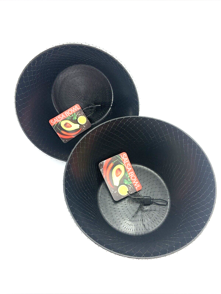 2 Pack Large 9" Multi Use or Salsa Bowls Liven up your parties and picnics or add Mexican flair during dinner. This 2-piece set features black bowls made of durable plastic with four legs for balance. Large 9" Round perfect for for soups, candy, sauces, desserts and more. Comes packaged in a net bag. Serve guacamole, salsa, pico de gallo, relishes, toppings and other favorites Lightweight and unbreakable. Fun to use. Easy cleanup. Set of 2 Bowls WARRANTY: This item has a 30-day warranty If you do not like your item Please return within 30 days to sender's address for a full refund SHIPPING: Shipped within 1 business day FREE SHIPPING