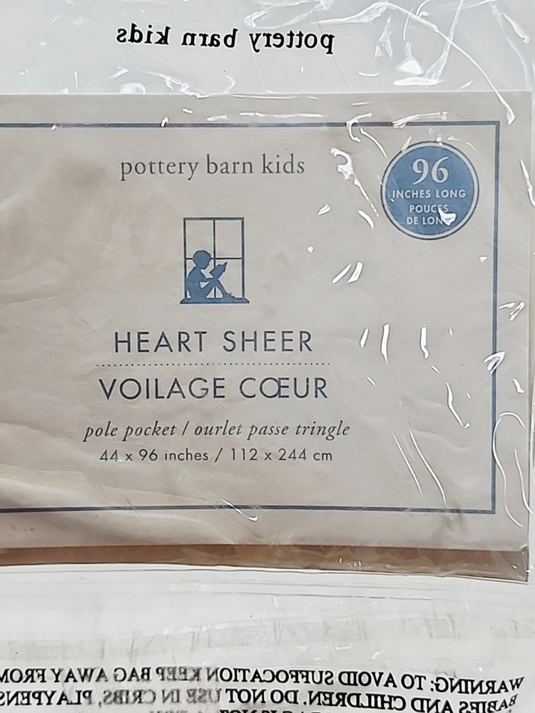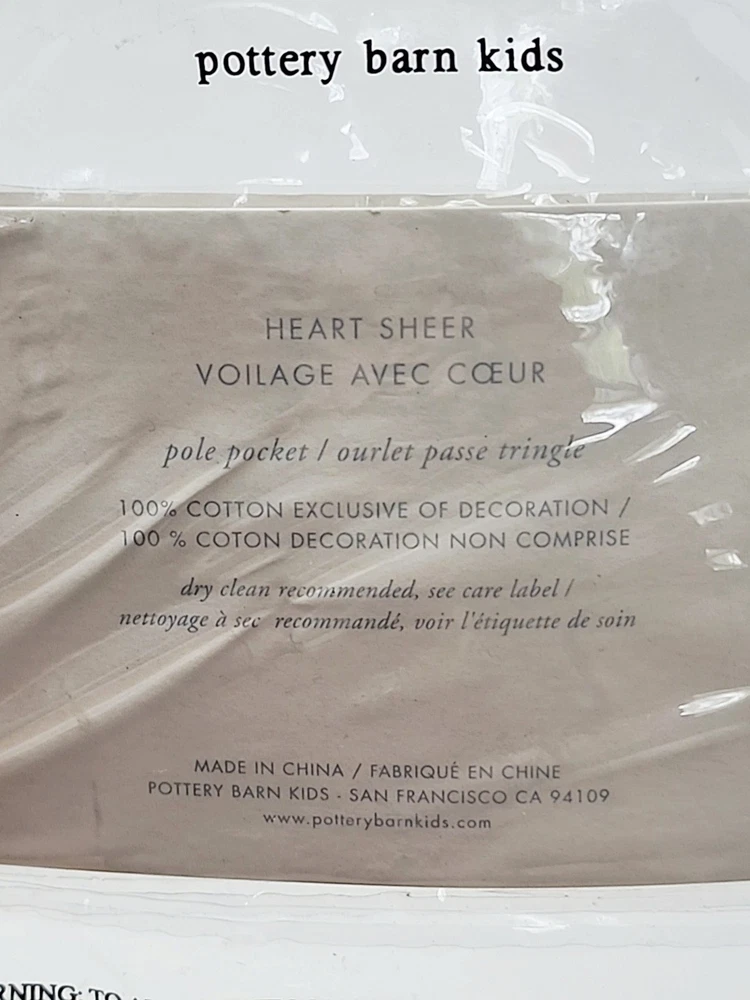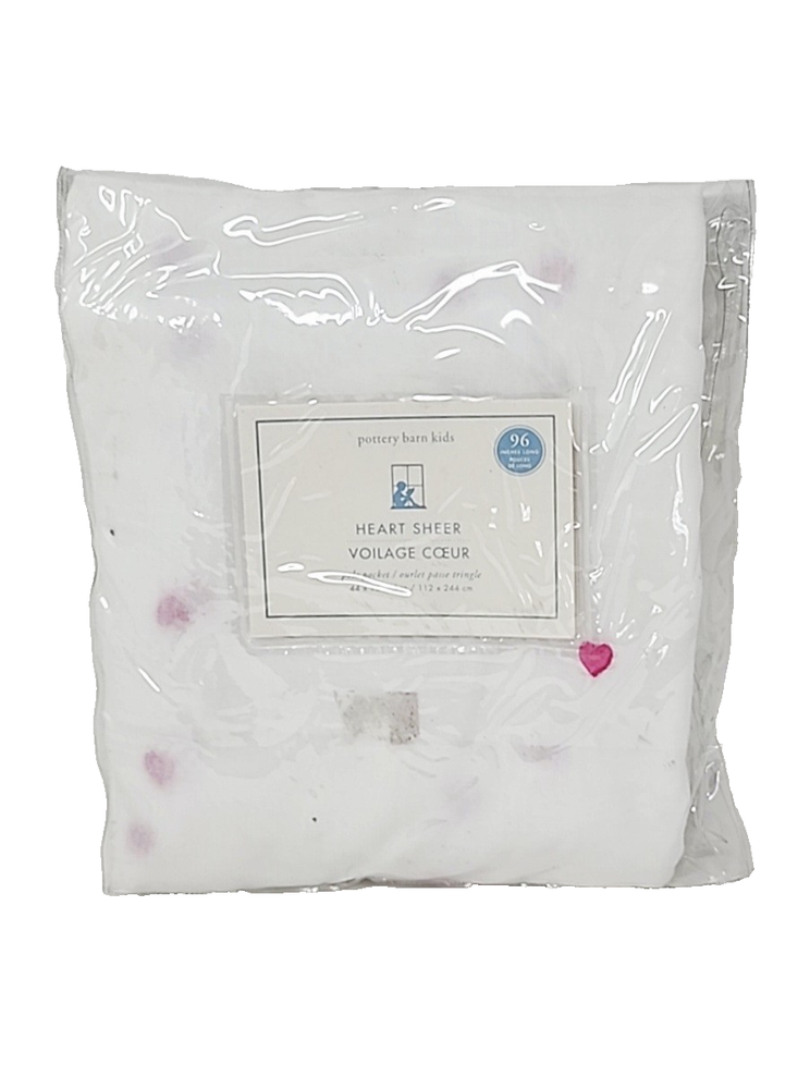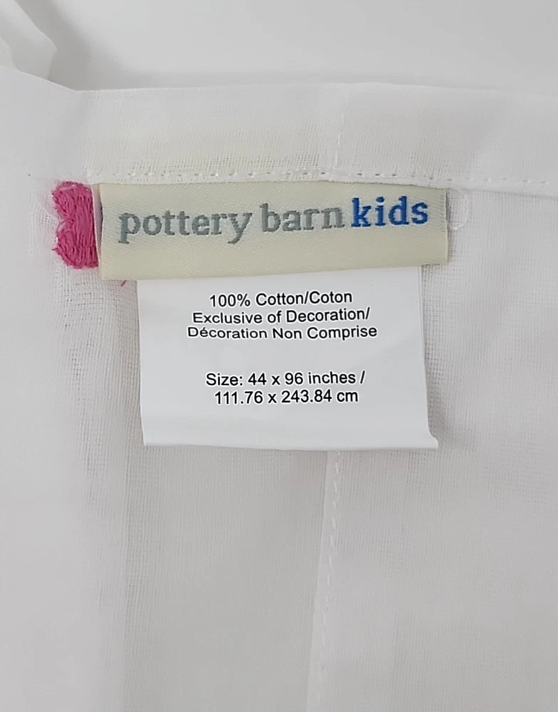 Pottery Barn Kids Embroidered Pink Hearts Sheer Drapery Panel 2 Panels 100% Cotton Pole Pocket 2015 Production Size - 44" X 96" Please see our other items for added shipping and item discounts and if you have any questions or need more information, we are happy to assist you via eBay messages. Many Blessings, Sher