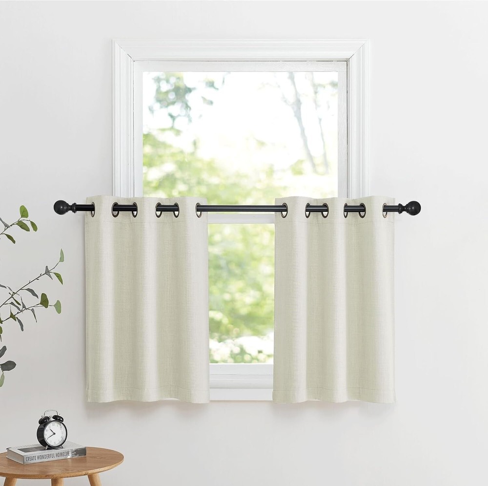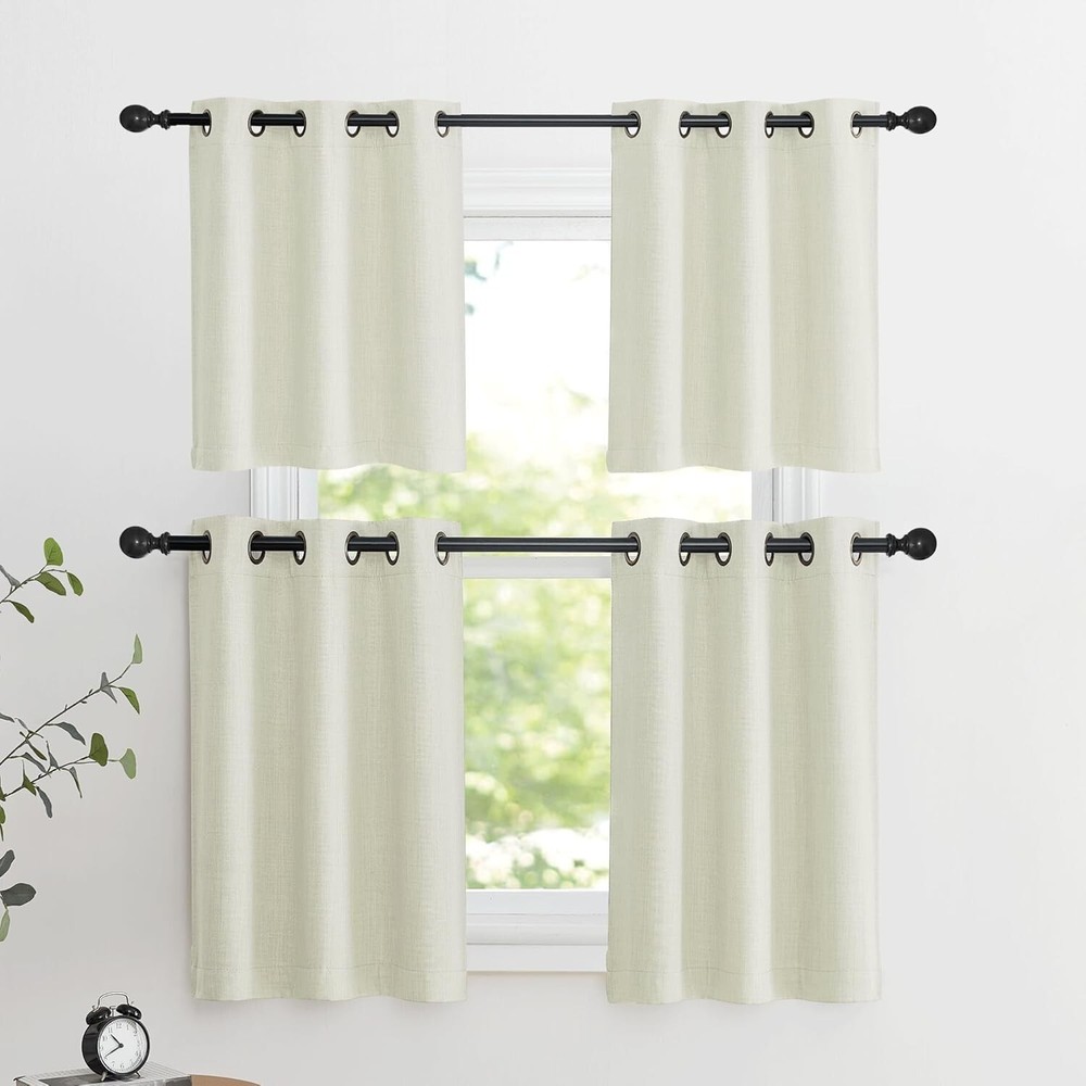 Add a touch of modern elegance to your kitchen with these 2 Panels Blackout Thermal Insulating Small Half Curtain Tiers from NICETOWN. These curtains are perfect for blocking out the sun while keeping your kitchen cozy and warm. The blackout fabric is made of a high-quality polyester blend material that is both durable and easy to care for with machine washable instructions. Measuring 34 x 30 inches, these curtains are designed to fit perfectly in any kitchen window frame. The natural color and solid pattern add a sleek and stylish touch to any space-themed kitchen. These curtains are perfect for adults and come with easy installation instructions. Upgrade your kitchen with these beautiful curtains today!