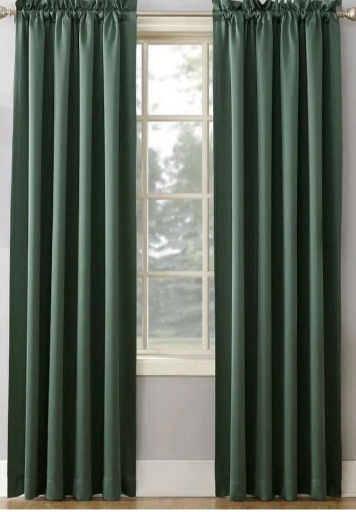 2 Panels Panel 95x54" Seymour Room Darkening Rod Pocket Curtain Dark Green Sun. Free shipping