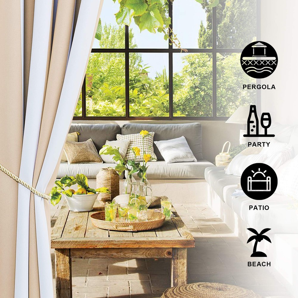 These outdoor curtains are fantastic! The triple-weave material blocks light, insulates, and even repels water while still feeling durable yet soft. The stainless steel grommets look sleek and won’t rust, holding up great against wind and rain. Love the subtle striped pattern—adds a modern touch to any patio. Easy to install and they look way more expensive than they are. Perfect for privacy, style, and weather protection!