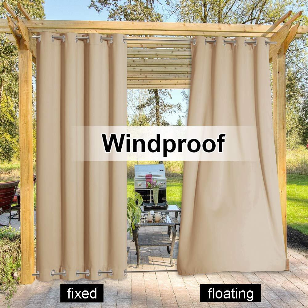 NICETOWN 2 Panels Weighted Blackout Curtains Patio Windproof Top & Bottom Grommet, Thermal Insulated Light Blocking Windproof Drapes Keep Privacy for Yard/Porch, Biscotti Beige, W52 x L84 Ready-Made: The package includes 2 panels of Weighted Blackout Curtains. And the rustproof stainless steel grommets at the top and bottom fit standard rods up to 1.6" diameter for easy install and sliding. Fixable Design: Grommets on both top and bottom make the weighted blackout curtains weighted and fixed enough to avoid blowing and flapping for providing you with much privacy as well as keeping sun and rain out. Nice Fabric:weighted blackout outdoor windproof curtains adopt triple weave and special waterproof material not only can block out sunlight but also withstand high wind and rain well. Serve Well: Fit both indoor and outdoor demand, also can serve as shower curtains. These weighted outdoor curtains can change your porch, balcony, and patio to an outdoor room with privacy and safety. Easy Care: Durable with good quality finishing. Machine washable and Wash the water temperature below 86F. Mild detergent no bleaching. Low-temperature ironing. 30 days money back on return policy. OVER ALLImpress your friends, family and guests with NICETOWN Ready Made Indoor / Outdoor Solid Grommet Top Curtain Panels.These simple yet elegant panels are a nice finishing touch to any outdoor extension of your home.FEATURESLight Control: ★★★★☆Thermal Insulation: ★★★★☆Water Proof: ★★★☆☆These 52 inch wide drapes come in 84, 95 and 108 inches long, offered in 6 earth-modern colors. The fabric is sturdy and soft on the touch. Hand pressed rust proof grommets fit the curtain rod of your choice up to 1.6 inch in diameter. Perfect for front porch, pergola, cabana, covered patio, gazebo, dock, beach home and so on.OUR BRANDInvite NICETOWN products into your home for their form and function, and experience their , craftsmanship, and value. We travel the world to find the materials and designs for our products and use the most sensible manufacturing methods. We thoroughly test each NICETOWN item and rely on feedback from our customers to help us deliver the highest quality. With a selection that continues to grow, the NICETOWN brand is set to become a game changer in your shopping cart and part of your lifestyle. SHIPPING - We offer FREE shipping on all orders! - We ship within 3 business days of payment, usually sooner - We use a selection of shipping services such as UPS, FedEx, USPS etc - We only ship to the lower 48 states, no APO/FPO addresses or PO Boxes allowed International buyers – please note: Import duties, taxes, and charges aren't included in the item price or postage cost. These charges are the buyer's responsibility. - Please check with your country's customs office to determine what these additional costs will be prior to bidding or buying. - We have confidence in our products, but if you are not fully satisfied please contact us within 30 days of purchase and you will get full refund. * Order Cancellation Policy ** You can return a product for up to 30 days from the date you purchased it. 1. The seller reserves the right to cancel the special case only due to eBay cancellation fee. 2. The decision of seller is the final. 3. The seller will respond to the cancellation request within 2 business days. Please wait for the result of cancellation. 4. In case the cancellation is not completed by some reasons, the buyer can follow the options below to get the refund. 4.1 The buyer can reject the item when it arrives. 4.2 The buyer can send the item back to the seller within 30 days If the buyer receives item (USA Shipment ONLY). The seller will provide the FREE return label to the buyer when the buyer opens " Return Item" case on eBay by using the reason as "Change my mind" ONLY. 5. When buyer has placed the order. The order will be processed and completed by automatic warehouse system within 5 minutes. In case that buyer sends the cancellation request after 5 minutes of placing the order, the request will be rejected. **Sending direct message to cancel the order is not allowed for every case.* Return Policy For the return case - If buyer would like to return the items for refund or replacement, please CONTACT SELLER to receive the free return label from seller. The refund or replacement will be processed with the tracking number of return label which is provided by seller only. The other ways of return which are not approved by seller will not be processed for the refund or replacement. CUSTOMER SERVICE - We try our best to make sure every customer is completely satisfied. - If there's a problem, feel free to message us! - We're happy to help.
