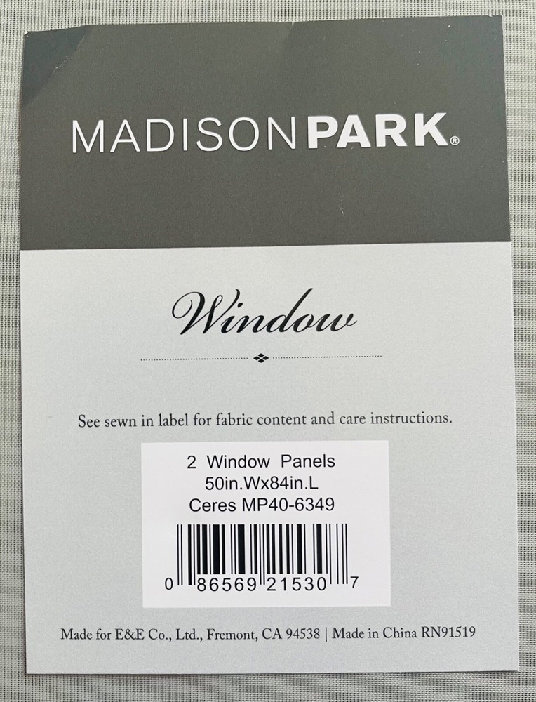 Madison Park Sheer Window Curtains Color: Light Gray Size: 50”W x 84”L Package Quantity: 2 Panels Condition: New in Package