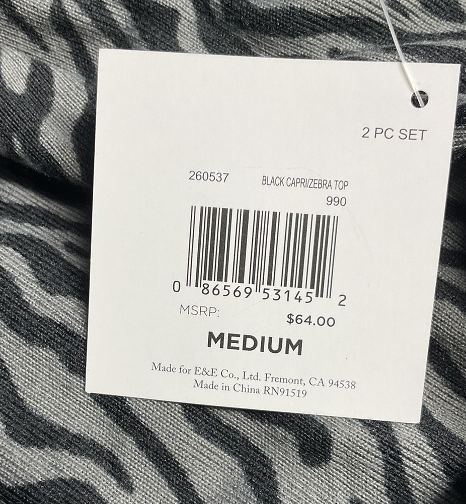 *2 Pc Set* Signature Madison Park (Size M) Lounge Set “Black Capri & Zebra Top”.