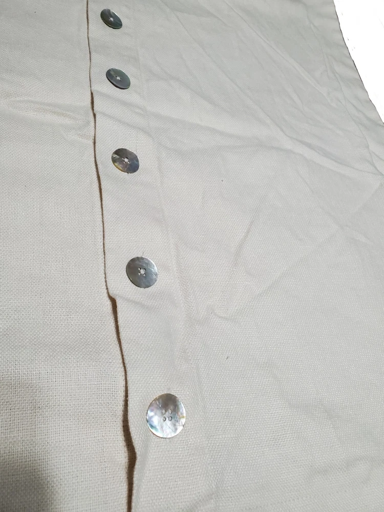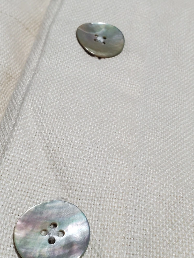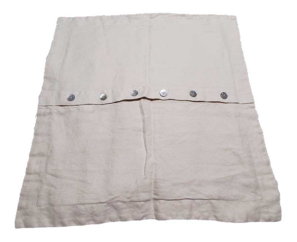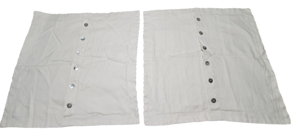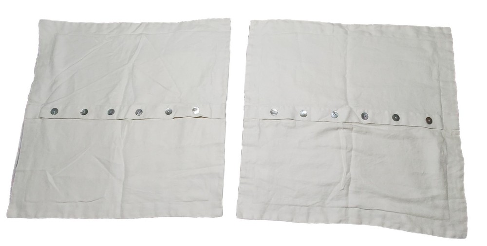 (2) Pottery Barn 100% Linen Pillow Shams Mother Of Pearl Buttons 29x29" Fits 25". Beautiful cream linen Pillowcases. Each one is 29"x29" for a full look add a 28" pillow. The buttons are on a strip of fabric & can be removed for washing. No Holes, No Stains & No Damage. Both have tags inside.