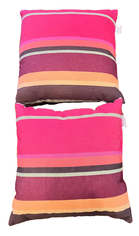 2 Pottery Barn 18" x 18" Striped Color Block Decorative Throw Pillows Made in Taiwan. Square Red, Orange, Brown, Yellow, Green. Needs a little cleaning. Good Condition...