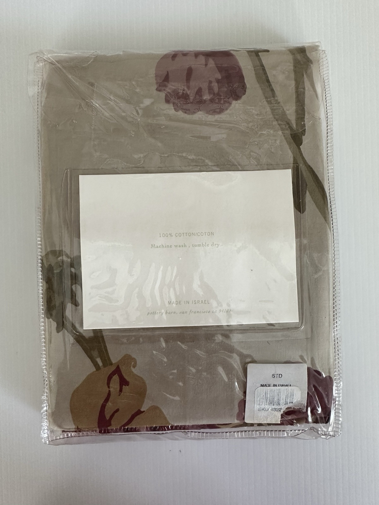 Set of (2) Pottery Barn Bed & Bath ~ HAZEL FLORAL Pillow Shams. Beautiful floral pattern in soft 100% cotton. Dark Tan/Beige background with shades of maroon and olive greens. Please note the images showing the full sham are lighter than the true colors. The true colors are shown in the first three images. NEW (old stock) in original packaging. Older hard to find pattern. I also have a listing with shams sold individually if you only need one. Any questions, please ask prior to purchase. Please check out my other treasures! New and hard to find items listed weekly. I usually offer 4 shipping options, so please compare and select the best option for you. I am always happy to combine items to save you money on shipping costs. Please request PRIOR to making payment. Thank you for browsing my store, I greatly appreciate it!