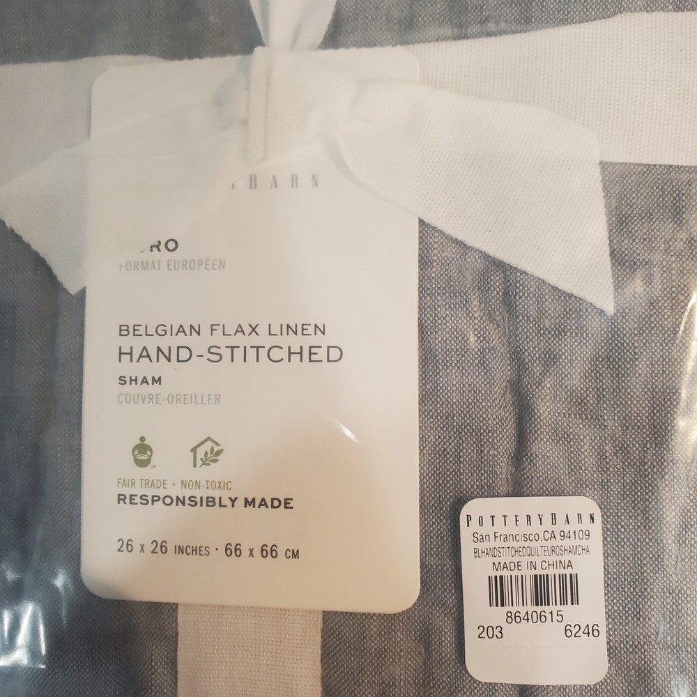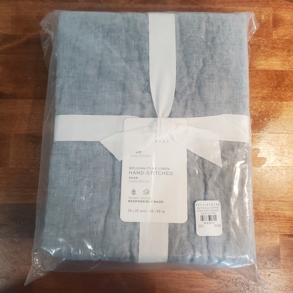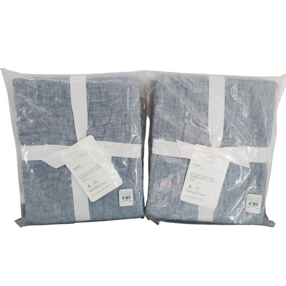 Pottery Barn Belgian Flax Linen Euro Sham Chambray Blue Color NWT 26" New...