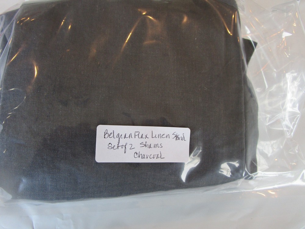 Up For Auction is - 2 Pottery Barn Belgian Flax Linen Shams charcoal New wo tag Smoke and pet free home.