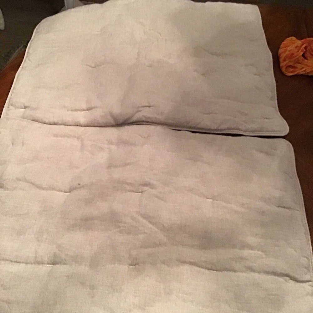 2 Pottery Barn Belgian Flax Linen Tufted Quilted Sham Standard Pillow Shams NNT. Shipped with USPS Ground Advantage....