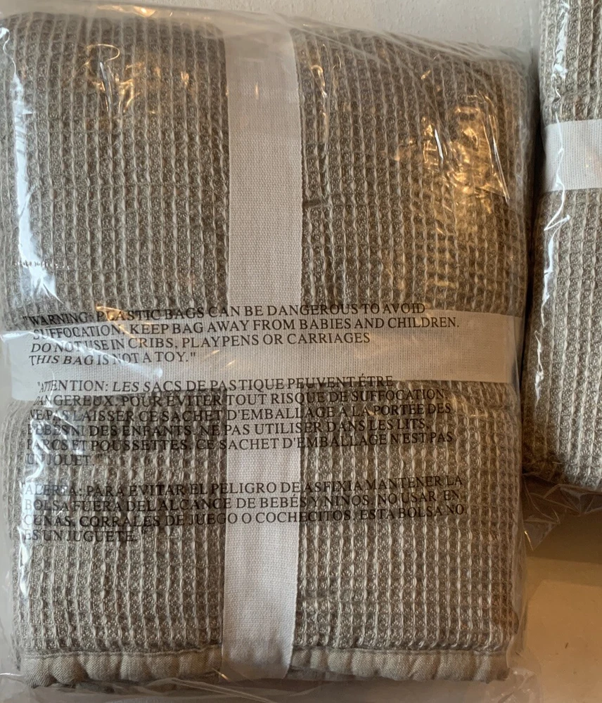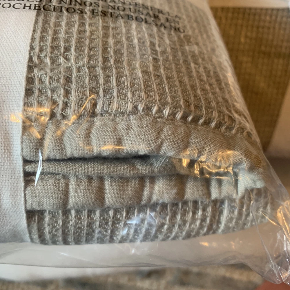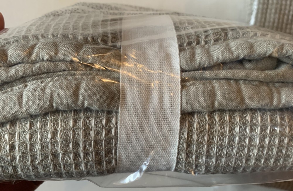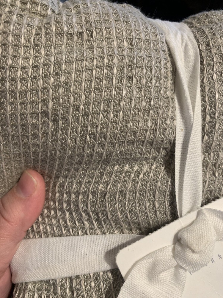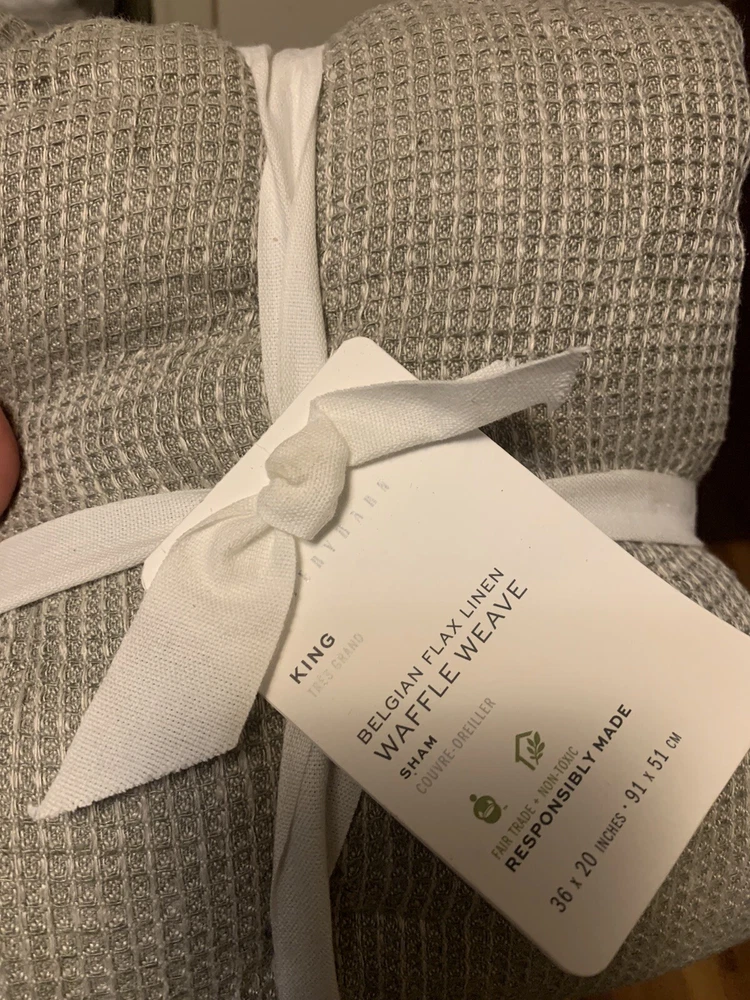 2 Pottery Barn Belgian Flax Linen WAFFLE WEAVE KING Quilted Pillow Shams with piped edge EUCALYPTUS New Front: 100% Belgian flax linen Back: 100% cotton Edge piping: 100% cotton Lining: 100% cotton Fill: 100% polyester Note: Color may have been renamed “bamboo” now Quilted shams with piped edging. 20” x 36” King size in EUCALYPTUS color - greenish taupe color Overlapping envelope closure *packaging may have been opened for the purpose of taking photos Woven from the world's finest European flax. It's prewashed for incredible softness and has a lived-in look and feel that only gets better with time. Natural fiber offers beautiful, unique variations in color ensuring your bedding is one of a kind. DETAILS Material: Made from 100% European Flax linen Front. Reverses to 100% cotton. Secure Design: Sham features an envelope closure. Natural Variation: Color variations are inherent to natural fibers and slight variations may occur. Certification and Standards: OEKO-TEX® STANDARD 100 certified, tested for 1000+ harmful substances (14.HUS.42449 HOHENSTEIN HTTI). Made in a Fair Trade Certified™ factory, empowering workers who made it. Place of Manufacture: Imported. CARE INSTRUCTIONS Machine wash in cold water; gentle cycle. Only non-chlorine bleach when needed. Tumble dry on low heat; remove promptly. Warm iron as needed. Ships from Oregon Keywords: eucalyptus, bamboo, quilted, quilt