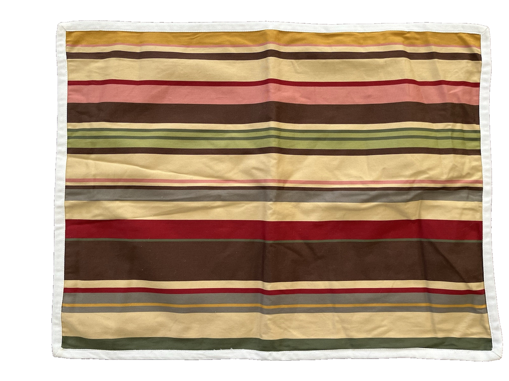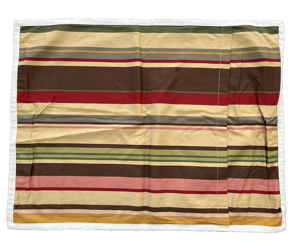 2 Pottery Barn Duncan Stripe Standard Pillow Shams Brown Yellow Red Green excellent - no stains or holes...