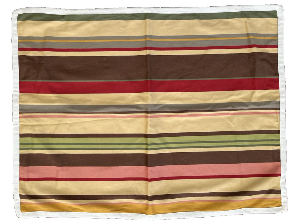 2 Pottery Barn Duncan Stripe Standard Pillow Shams Brown Yellow Red Green excellent - no stains or holes