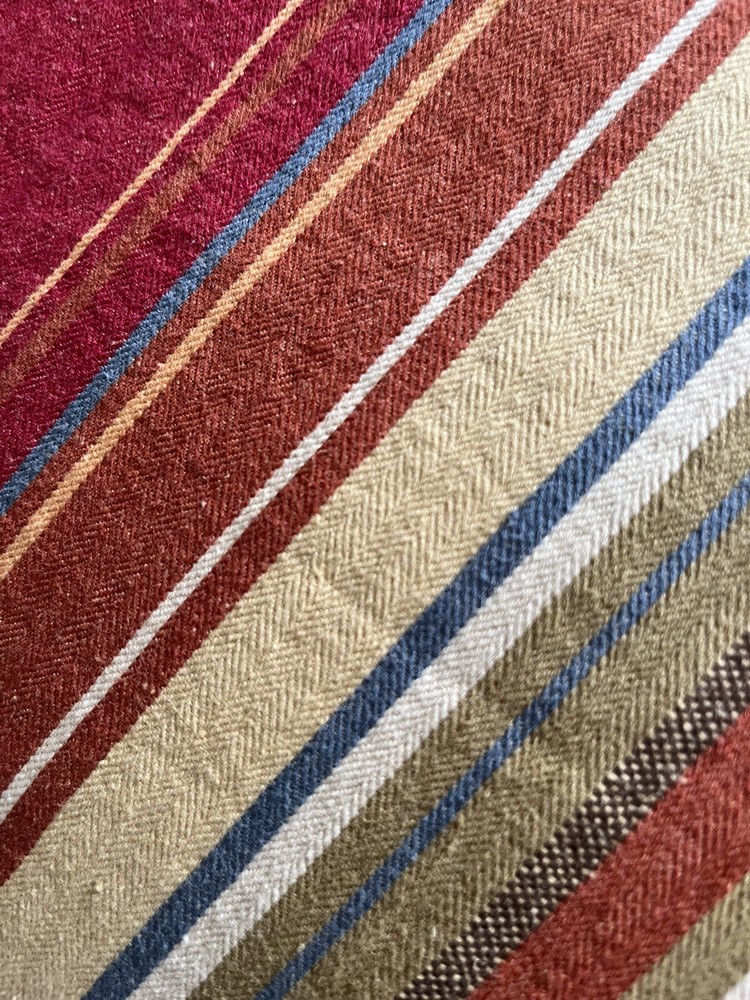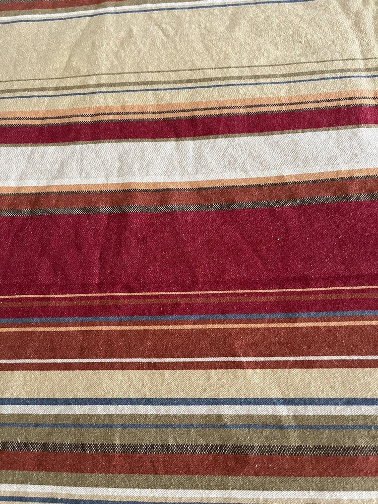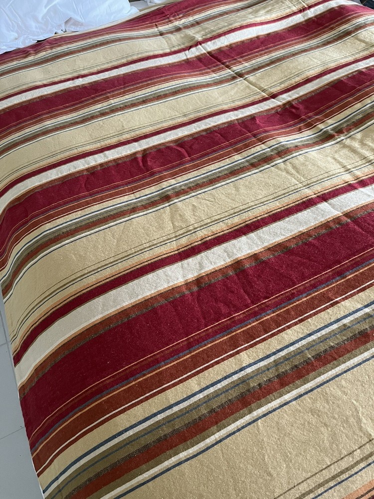2 Pottery Barn twin size duvet covers. Southwestern Serape Stripe pattern features desert tones in red, terra cotta, blue, green and tan. 55% linen, 45% cotton; button closure. MEASUREMENTS: Twin duvet covers measure 68 x 86 inches. Pottery Barn labels. CONDITION: Very good vintage condition. Smoke/pet free home. No rips or tears. Note one small stain on one side of one (see final photo). Please view all photos. SHIPPING: Prices quoted are for the Continental United States.