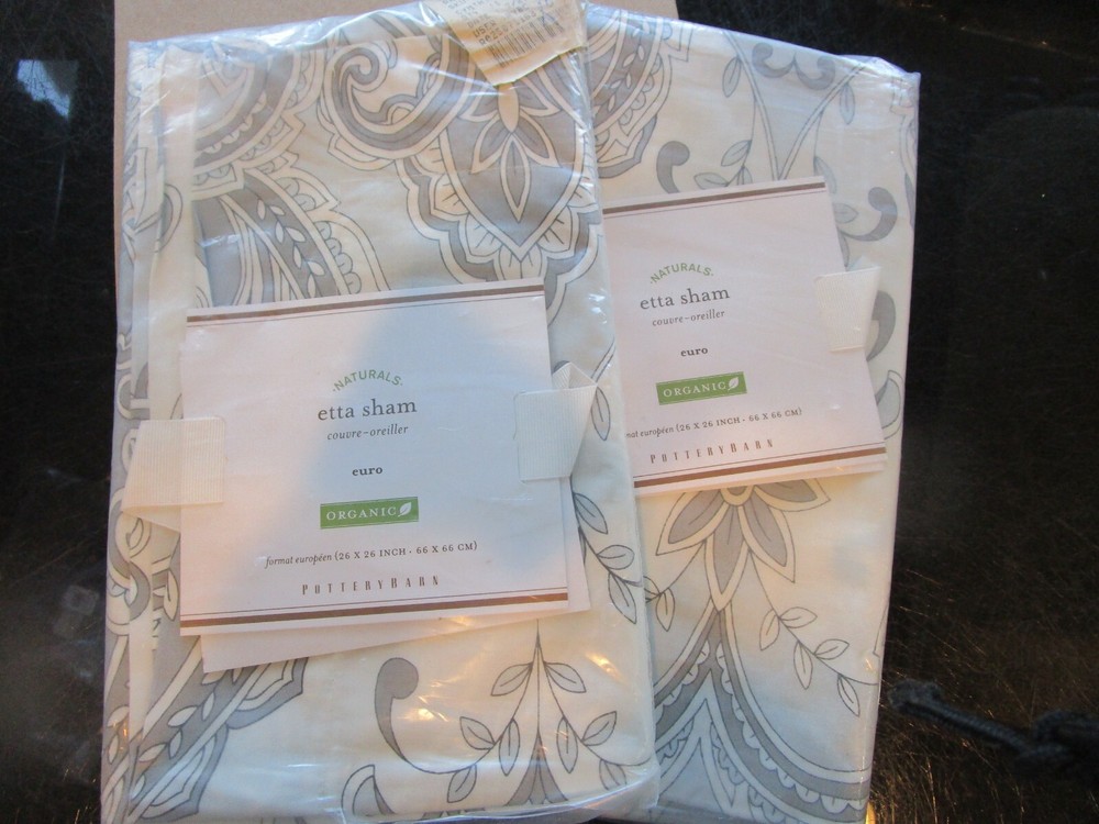 Up For Auction is - 2 Pottery Barn Etta neutral Euro shams New w tag Smoke and pet free home....