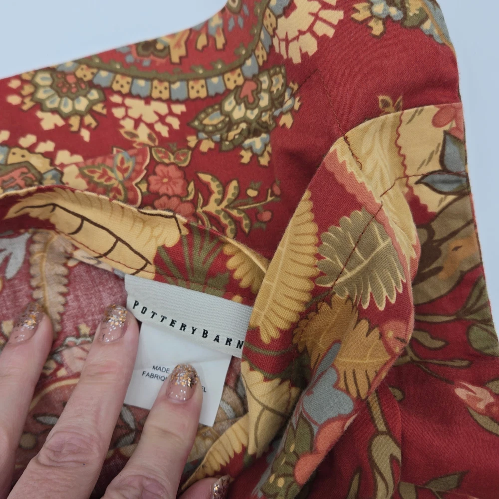 Pottery Barn Clara Euro Shams – Set of 2 Add rich, timeless charm to your bedroom with this set of two euro pillow shams from Pottery Barn’s Clara collection. The warm, deep red background is accented with an elegant floral and paisley design in shades of olive green, dusty blue, mustard, and coral. Made of 100% cotton, these shams offer both durability and softness. Standard euro size with envelope closure on the back. Details: • Brand: Pottery Barn • Model: Clara • Size: Euro (26” x 26”) • Material: 100% cotton • Closure: Envelope style Condition: Gently used, excellent condition – no rips, stains, or fading. See photos and video of actual item for sale. Comes from a smoke-free home. Why You’ll Love It: • Eye-catching bohemian pattern perfect for fall or rustic decor • High-quality cotton fabric • Matches well with a variety of bedding styles • Discontinued and hard to find