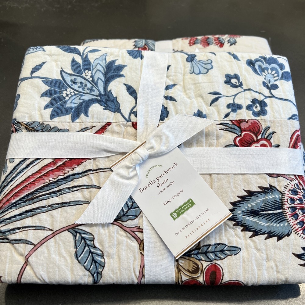Enhance your bedroom decor with this set of two Pottery Barn Fiorella Patchwork Cotton Shams, designed to fit a king-sized bed. The vibrant red color and intricate patchwork pattern add a touch of elegance and warmth to any room. Made from high-quality cotton, these pillow shams are comfortable, durable, and easy to care for, ensuring a good night's sleep and long-lasting beauty. Whether you're updating your existing bedding or starting fresh, these shams are the perfect addition to your collection. With Pottery Barn's reputation for quality and style, you can trust that these shams will complement your bedroom's decor and provide the perfect finishing touch.