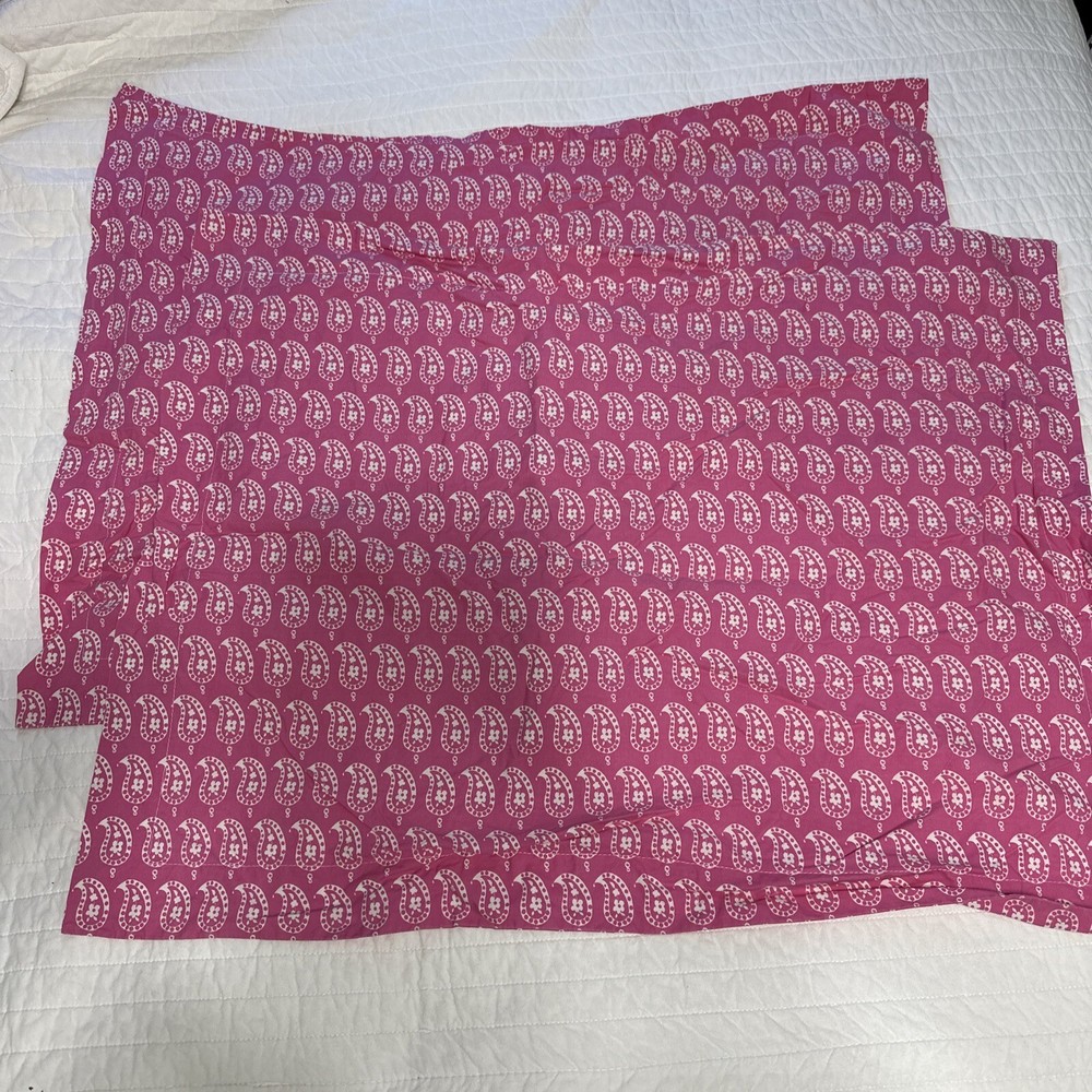 Add a touch of bohemian luxury to your bedroom with these Pottery Barn pillow shams. The rectangular shams are designed to fit standard size pillows and are made of 100% cotton material. The pink paisley pattern adds a stylish touch to any room, while the machine washable shams make them easy to care for. these pillow shams are perfect for teens, adults, and kids alike. The Pottery Barn model is crafted in israel and features a no closure design. Care instructions include machine washable and the shams are perfect for adding a custom touch to any bedroom decor.