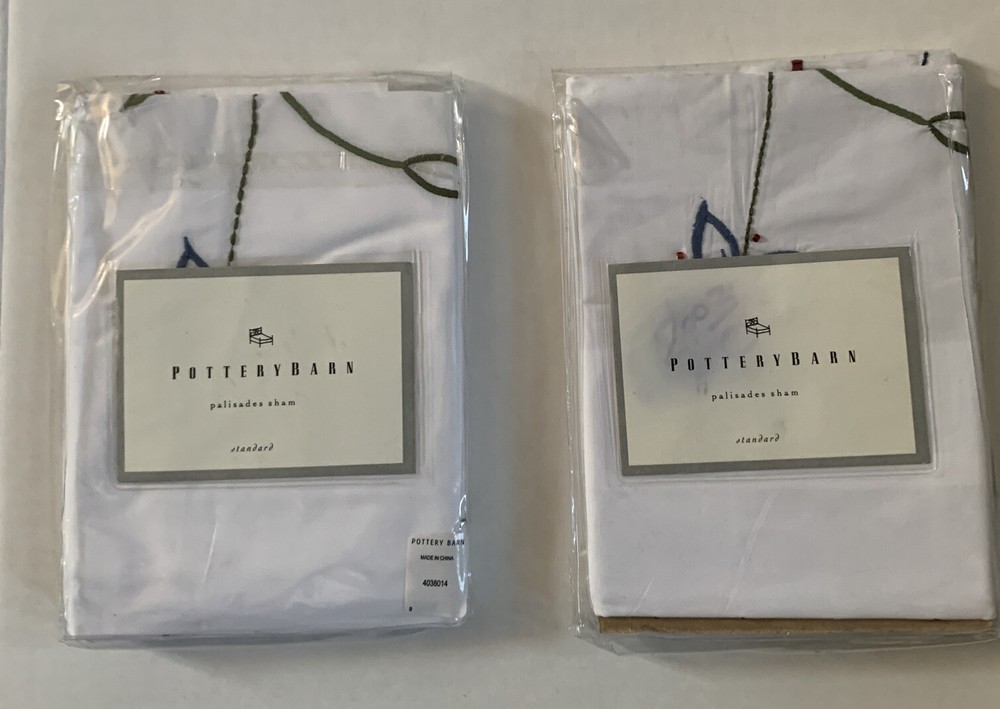 2 standard size palisades pottery barn pillow shams sealed in package. Embroidered flowers. Please look at the pictures for details.