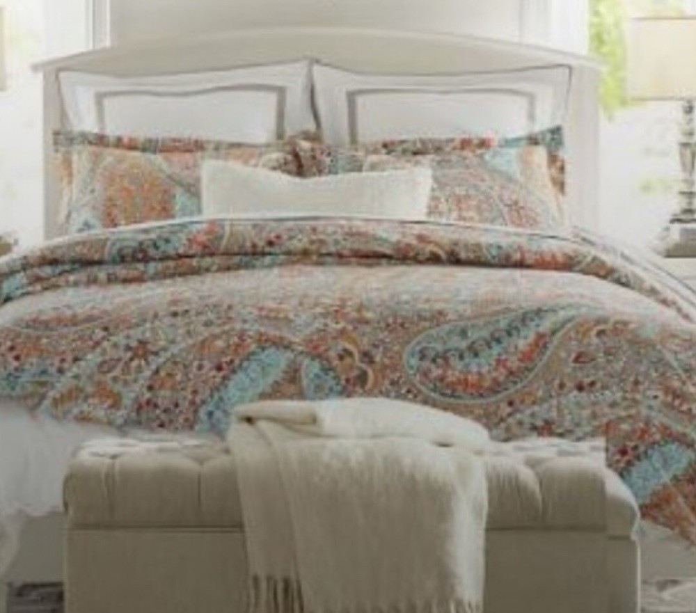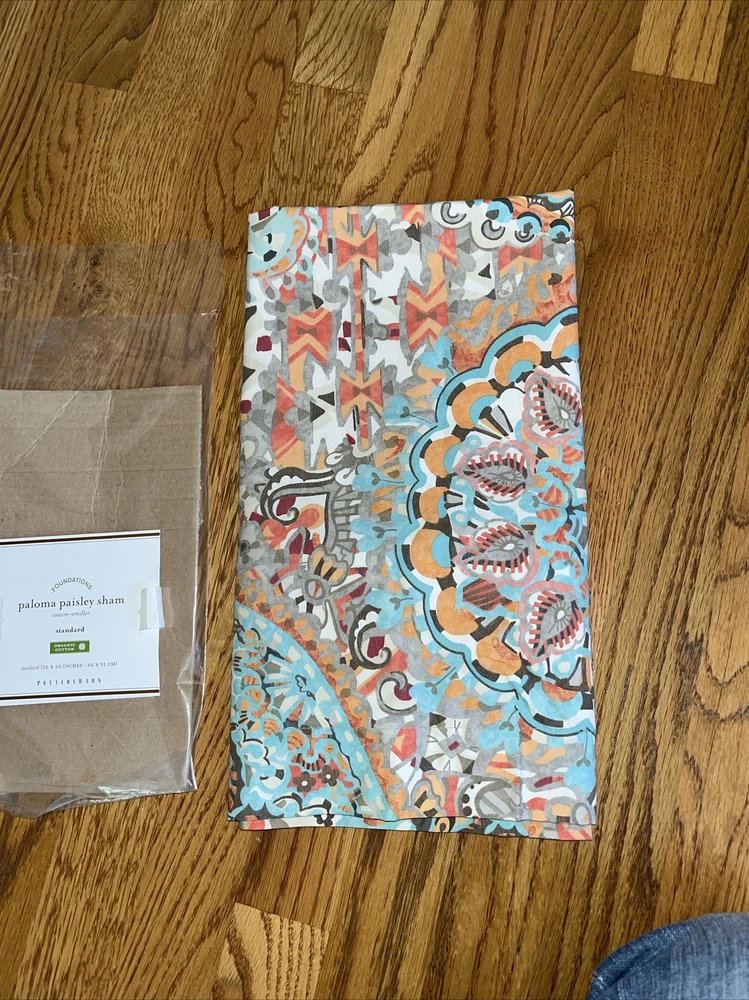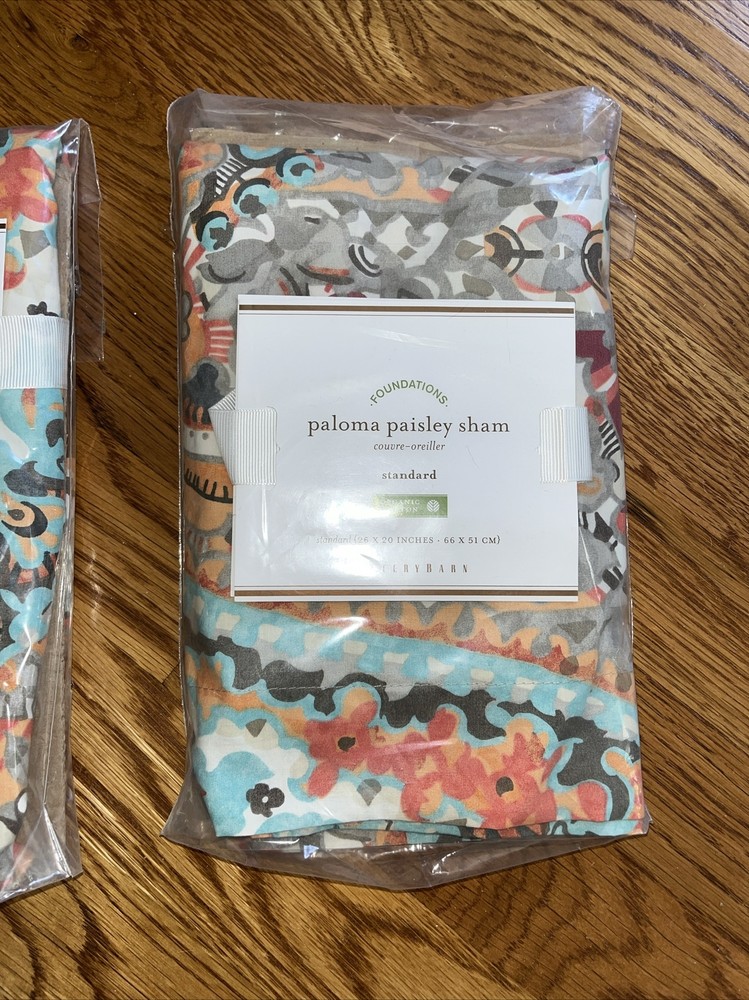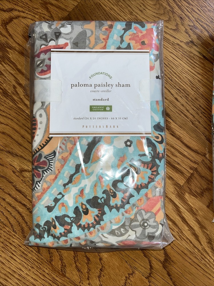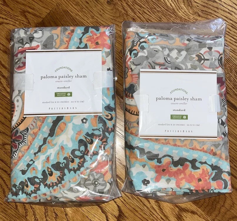 These discontinued Pottery Barn Paloma Paisley Shams were purchased for my guest bedroom. They were taken out of the packaging, but we ended up going in a different direction , so we couldn’t use them. While they haven’t been used, they were taken out of the package, so I may not have folded them exactly how they might be if never removed. Please keep that in mind when purchasing. The first two pics are from the PB site, but the rest of the pics show the actual shams. Please see all the pics and ask all questions before bidding. No returns. Thanks