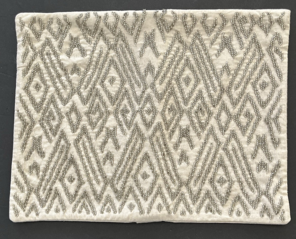 2 Pottery Barn Silver Hand Beaded Throw Accent Pillow Cover 12” X 16” single hidden button closure on back cotton/linen blend