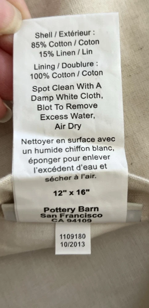 2 Pottery Barn Silver Hand Beaded Throw Accent Pillow Cover 12” X 16” single hidden button closure on back cotton/linen blend...