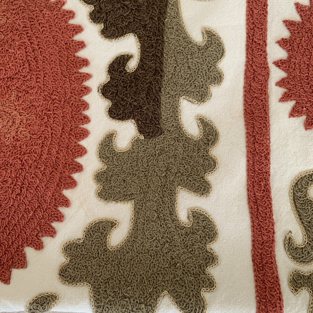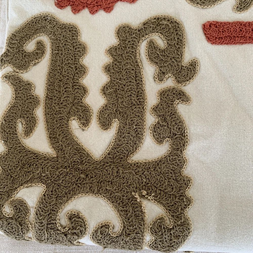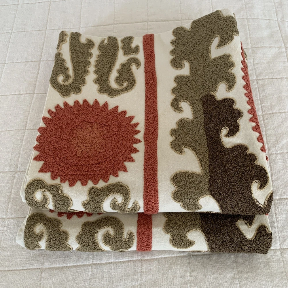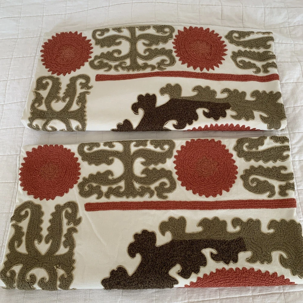 Very nice used condition. No stains, holes or rips. Solid cotton back with button closure. PLEASE EXAMINE PHOTOGRAPHS CAREFULLY THERE ARE SOME SNAGS WHERE THE THREADS ARE A BIT PULLED. THIS IS COMMON WITH THIS TYPE OF NEEDLEWORK. Set Includes: 2 Pillow covers Always Happy to Combine shipping.