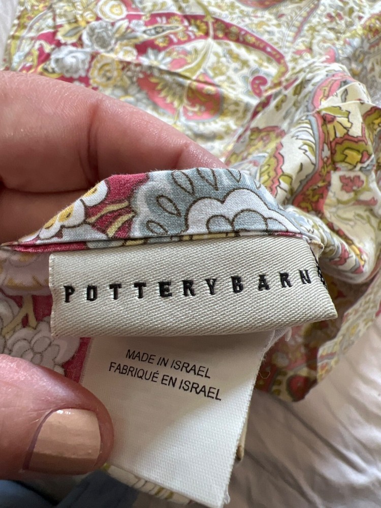 Brighten your bedroom decor with these Pottery Barn floral paisley pillow shams. Their soft 100% cotton fabric adds comfort and a touch of elegance. • Set includes 2 pillow shams • Paisley floral print design • Made from 100% cotton • Standard size dimensions • Machine washable for easy care Size: Unisex Standard Condition: Pre-Owned Good