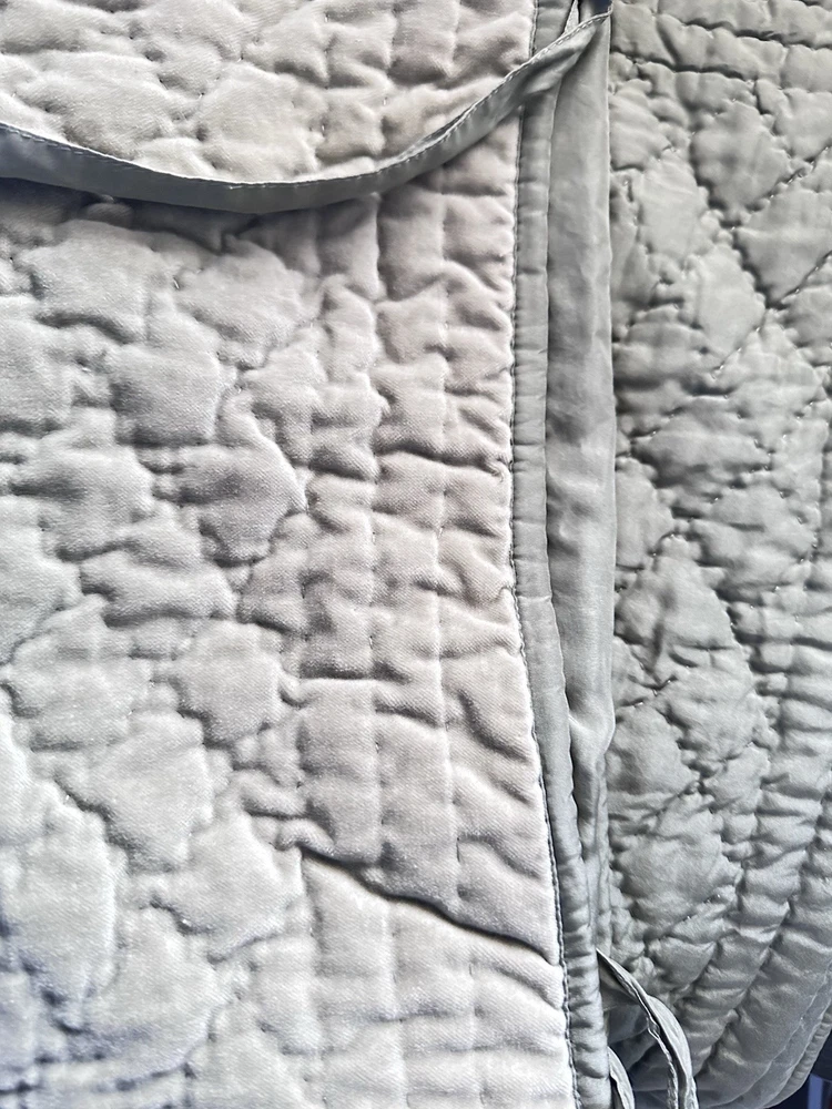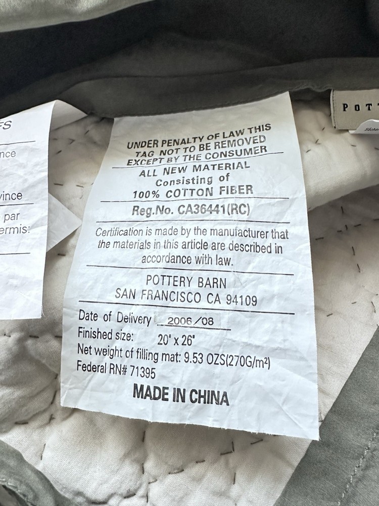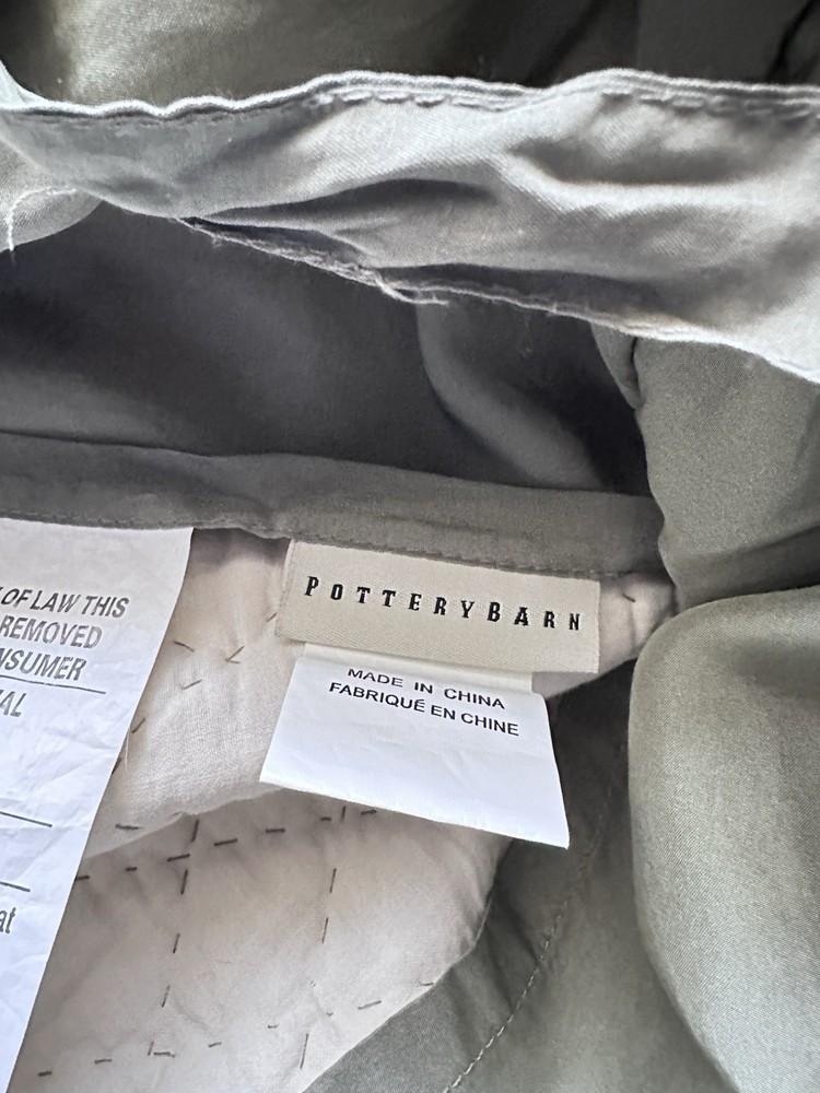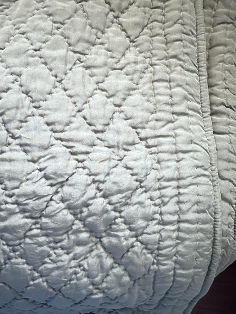Elevate your bedroom decor with this set of two rare Pottery Barn Olive Green Diamond Quilted Velvet Shams. The shams are made with a luxurious blend of silk and velvet materials, with a 100% cotton fill for ultimate comfort. The rectangular shape and standard size make them a perfect fit for any bedroom. The shams feature a tie closure and are machine washable for easy care. The reversible two tone olive green color adds a touch of farmhouse charm to any room, while the quilted design provides a touch of contemporary style. These shams are perfect for adults, teens, and kids alike, and are a great addition to any home decor. Bring a touch of Hollywood Regency or Modern style to your bedroom with these elegant and luxurious shams from Pottery Barn. Excellent pre-owned condition. Please see pictures for more details. Shipped using USPS mail.