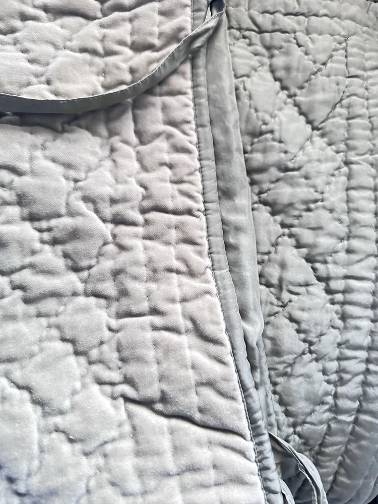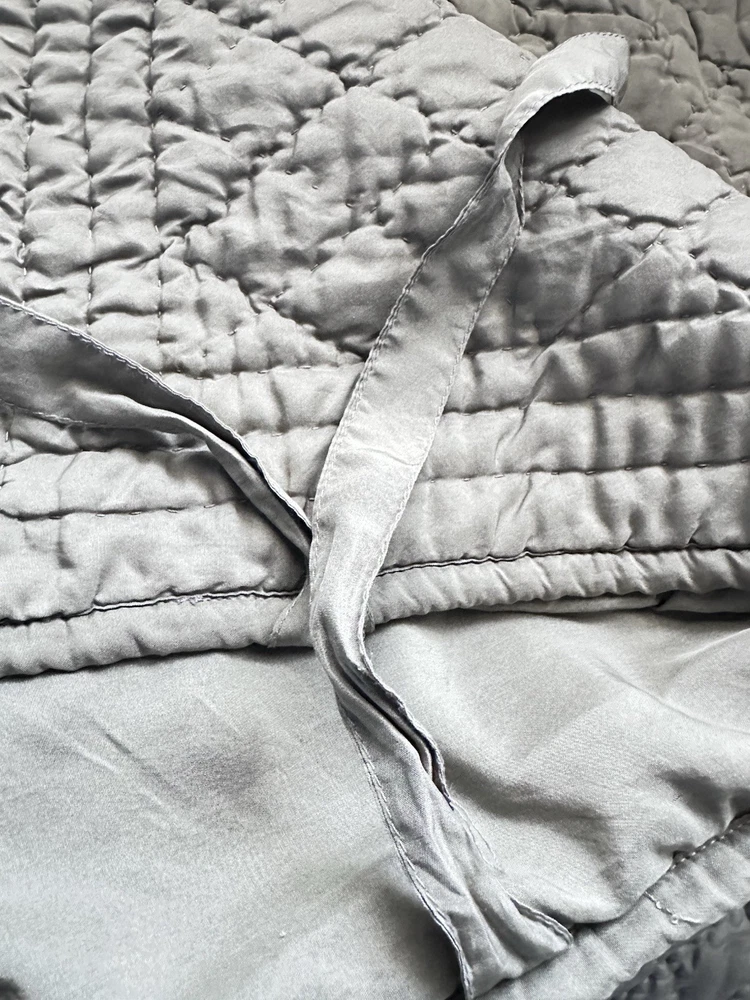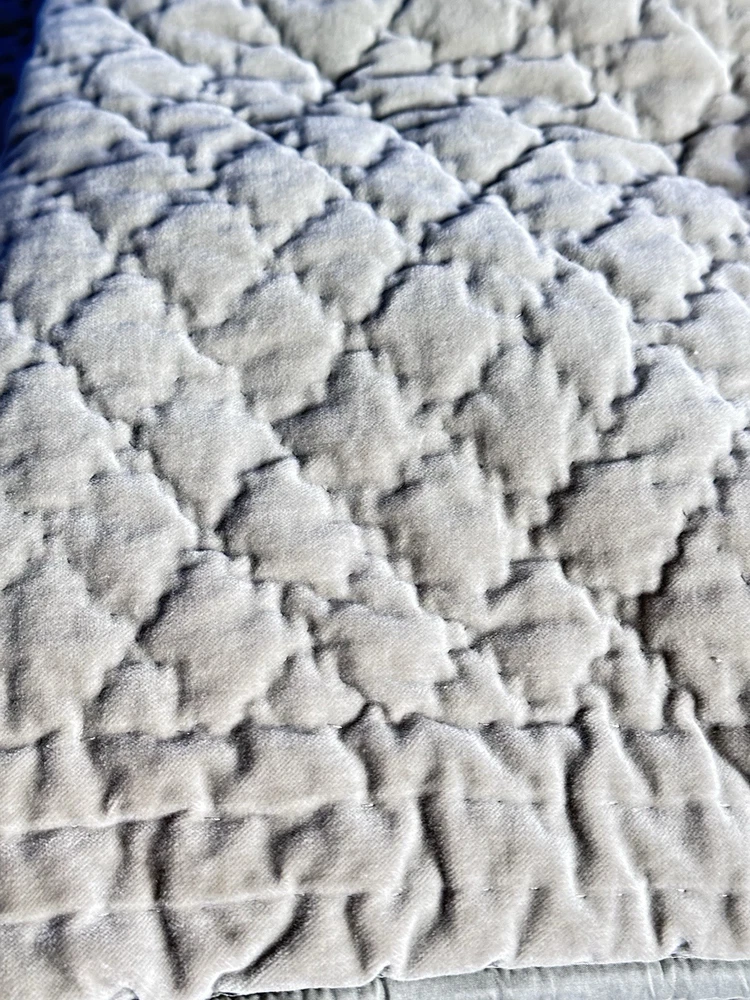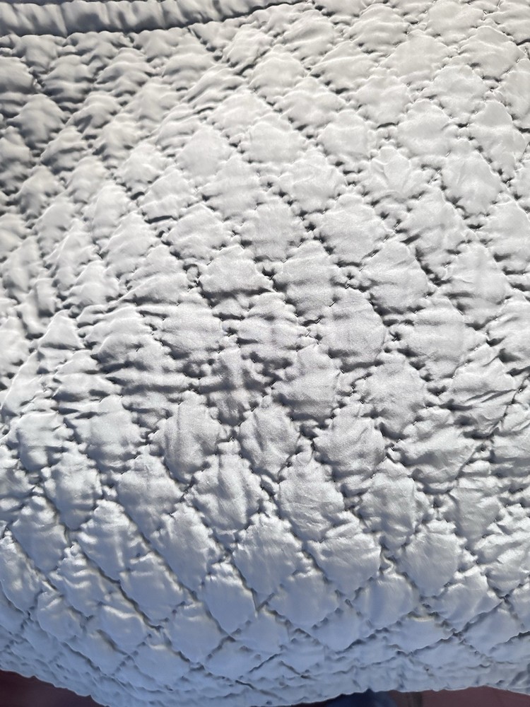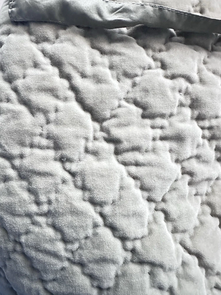 Elevate your bedroom decor with this set of two rare Pottery Barn Olive Green Diamond Quilted Velvet Shams. The shams are made with a luxurious blend of silk and velvet materials, with a 100% cotton fill for ultimate comfort. The rectangular shape and standard size make them a perfect fit for any bedroom. The shams feature a tie closure and are machine washable for easy care. The reversible two tone olive green color adds a touch of farmhouse charm to any room, while the quilted design provides a touch of contemporary style. These shams are perfect for adults, teens, and kids alike, and are a great addition to any home decor. Bring a touch of Hollywood Regency or Modern style to your bedroom with these elegant and luxurious shams from Pottery Barn. Excellent pre-owned condition. Please see pictures for more details. Shipped using USPS mail.