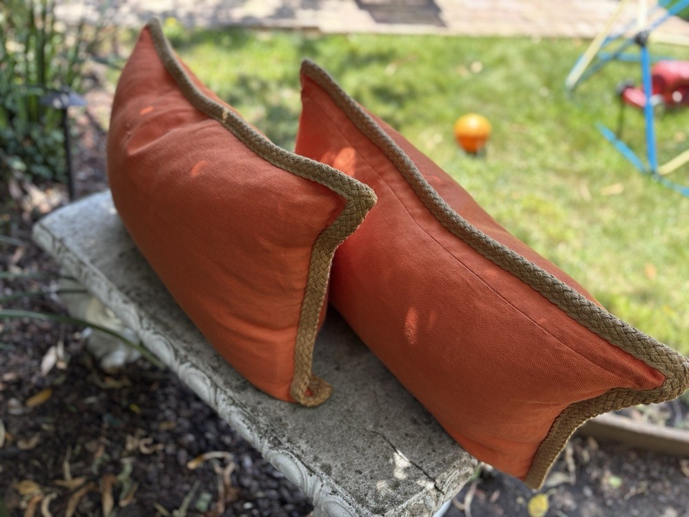 These vibrant orange Pottery Barn lumbar pillows are a stunning addition to any space! The 100% linen fabric feels luxurious, while the jute trim adds a rustic touch. At 20x13 inches, they're the perfect size for sofas, chairs, or outdoor seating. I love how the zip closure makes cleaning a breeze—just toss them in the wash! The bold color instantly brightens my patio and living room. Super comfortable with great support, and the quality is exactly what you'd expect from Pottery Barn. A fantastic set that brings both style and function!