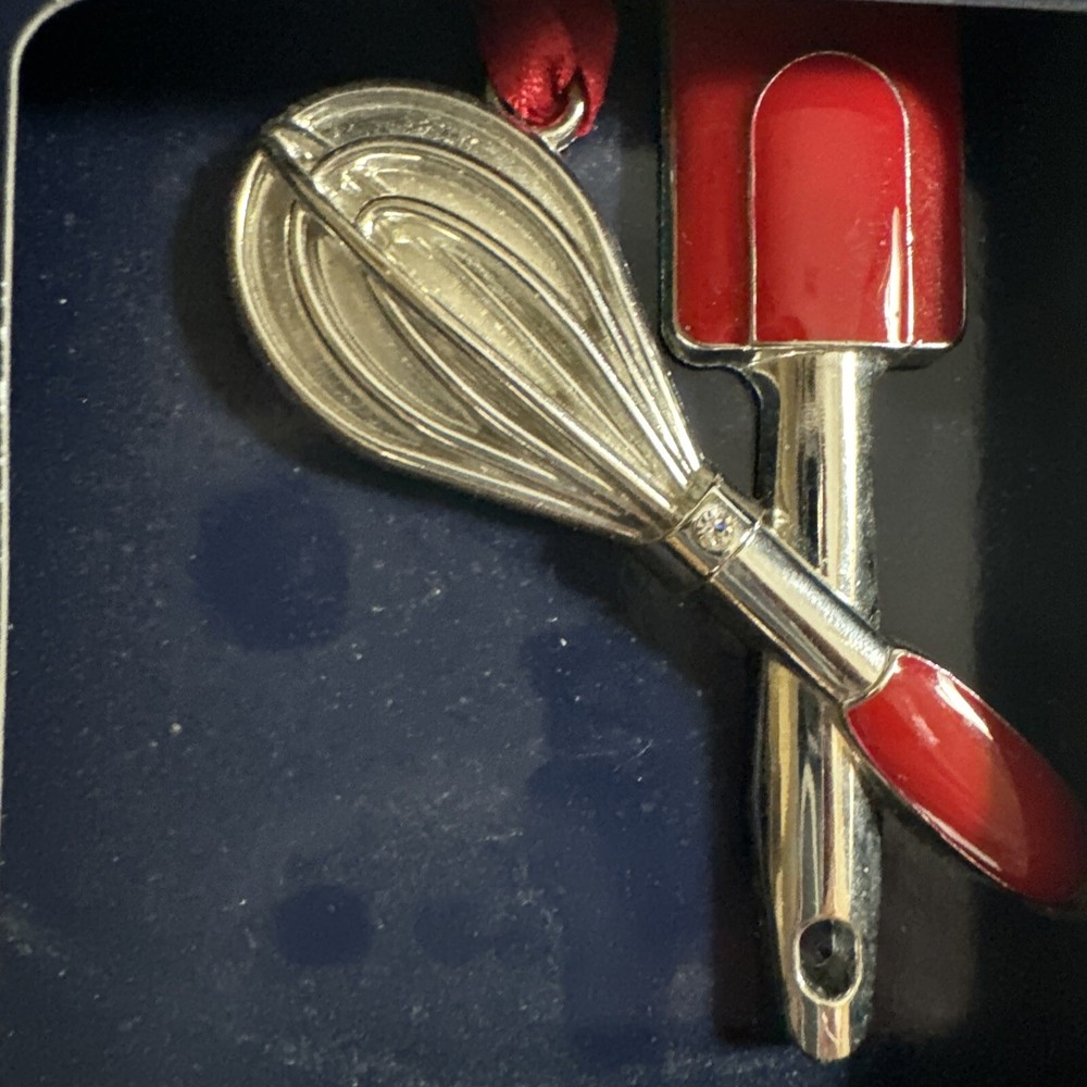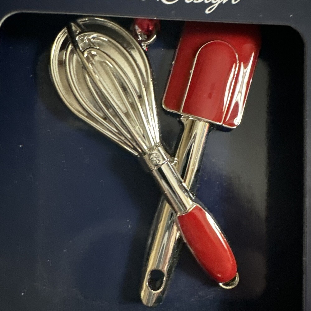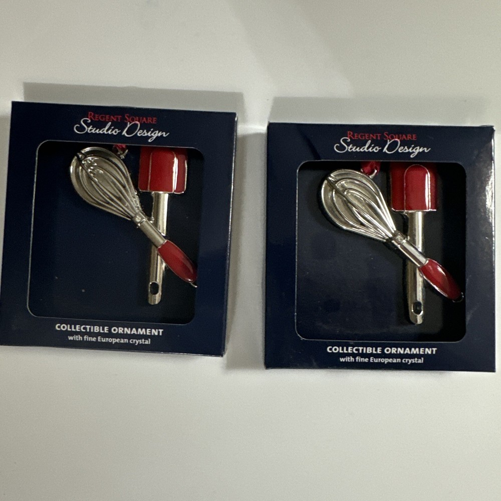 Add some festive flair to your Christmas tree with this Regent Square Studio Design holiday ornament featuring a whisk and spatula. The square-shaped ornament is small and measures 3 inches in length and height, making it a perfect addition to any tree. The ornament comes in a set of two and is colored red with a holiday design, making it a great gift for any occasion. This Regent Square holiday ornament is part of the Kitchen franchise and is from the Ornaments collection. It is made with quality and comes from China. The ornament's theme is holiday and its subject is design, perfect for those who love to cook or bake during the Christmas season. Celebrate the holidays with this unique and charming ornament!